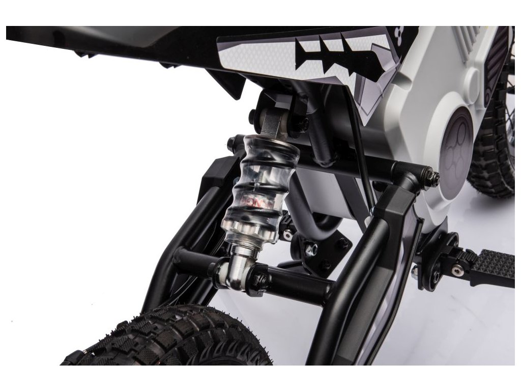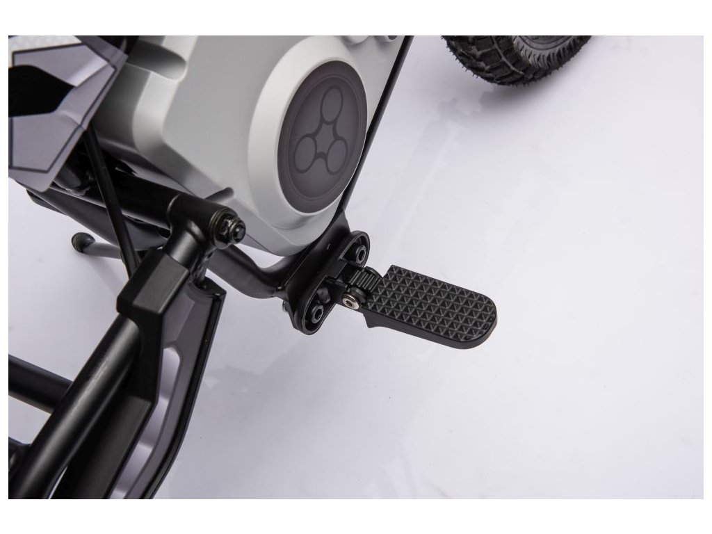 Dětská elektrická motorka Cross přijíždí s výkonným elektrickým motorem a bateriemi. Dítě se posadí do pohodlně tvarované sedačky potažené eko kůží.