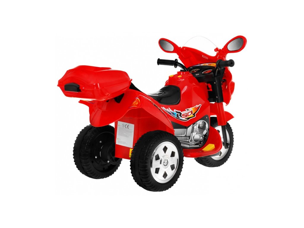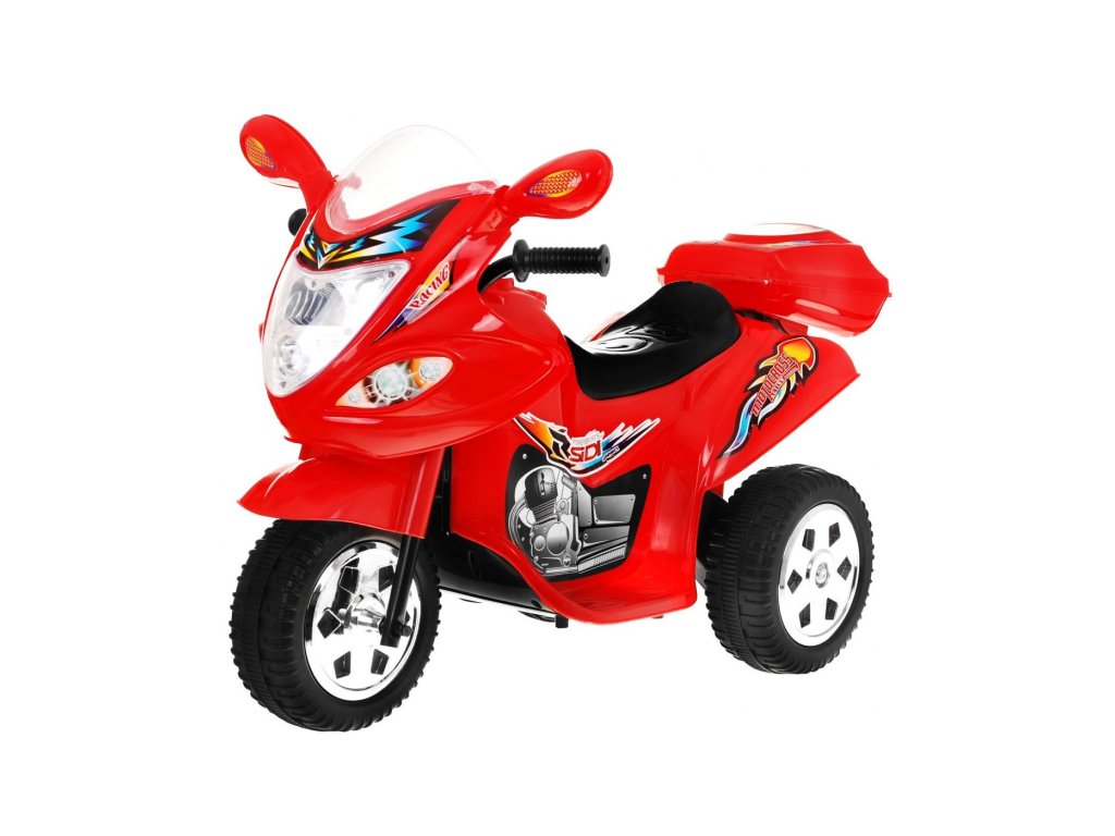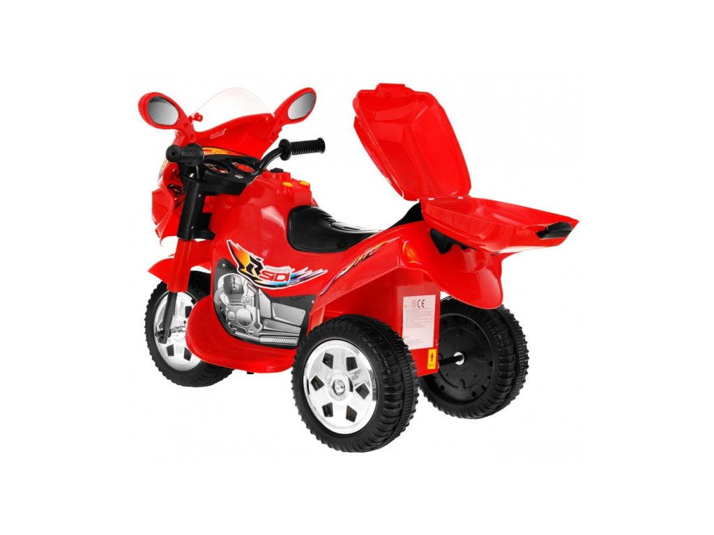 Dětská motorka, která má silné plasty, kvalitní materiály a zpracování. Jezdí vpřed i vzad – ovládá se přepínačem na nádrži a nožním pedálem na stupátku. Při nesešlápnutém pedálu tah motoru nahrazuje brzdu. Motorce svítí světla a samozřejmě nechybí zvukové efekty. Jedinečná motorka má otevíratelný kufr.