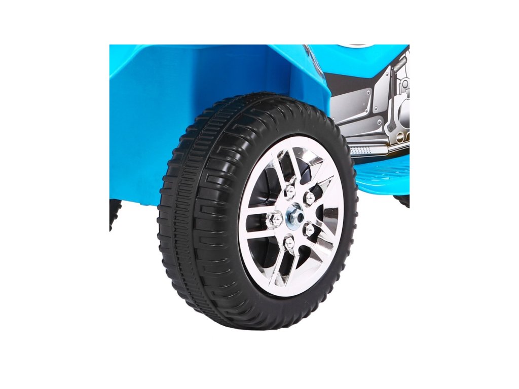 Dětská motorka, která má silné plasty, kvalitní materiály a zpracování. Jezdí vpřed i vzad – ovládá se přepínačem na nádrži a nožním pedálem na stupátku. Při nesešlápnutém pedálu tah motoru nahrazuje brzdu. Motorce svítí světla a samozřejmě nechybí zvukové efekty. Jedinečná motorka má otevíratelný kufr. Motorka je vhodná pro děti od 3 let.