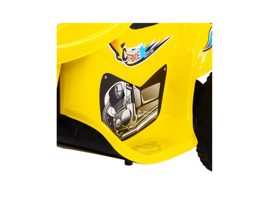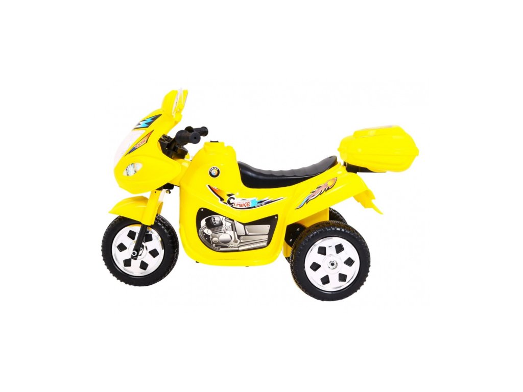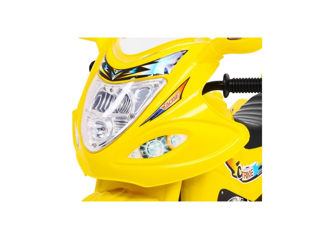 Dětská motorka na baterii, která má silné plasty, kvalitní materiály a zpracování. Jezdí vpřed/vzad – ovládá se přepínačem na nádrži a nožním pedálem na stupátku. Při nesešlápnutém pedálu tah motoru nahrazuje brzdu. Motorce svítí světla a samozřejmě nechybí zvukové efekty. Jedinečná motorka má otevíratelný kufr, pochromovaný vnitřek kola a atrapu motoru.