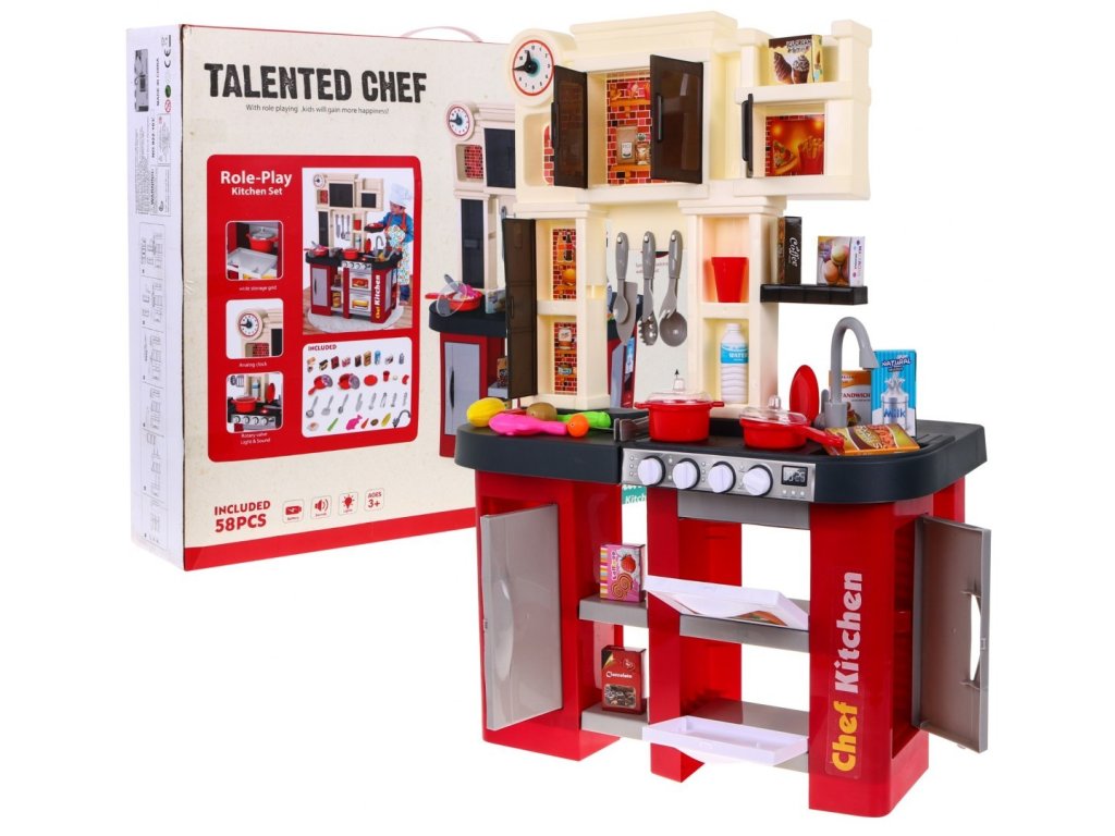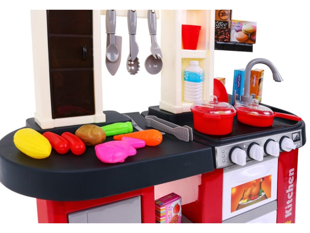 Dětská interaktivní kuchyňka s příslušenstvím červená