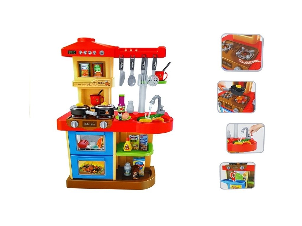 Funkční kohoutek s tekoucí vodou a úložný prostor pod varnou deskou dělají tuto kuchyňku výjimečnou. Ideální volba pro rozvoj kreativity a zručnosti dětí.