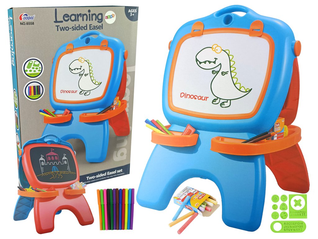 Oboustranná magnetická tabule udělá radost ne jednomu umělci, ale může být i učební pomůckou. Kreslení křídou a fixy je něco pro dítě, které miluje kreslení. Kreslení na tabuli rozvine u vašeho dítěte představivost, přesnost, koordinaci oko a ruka.