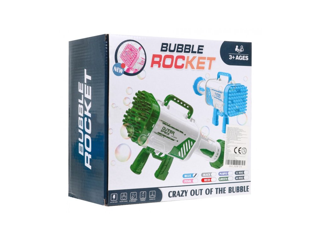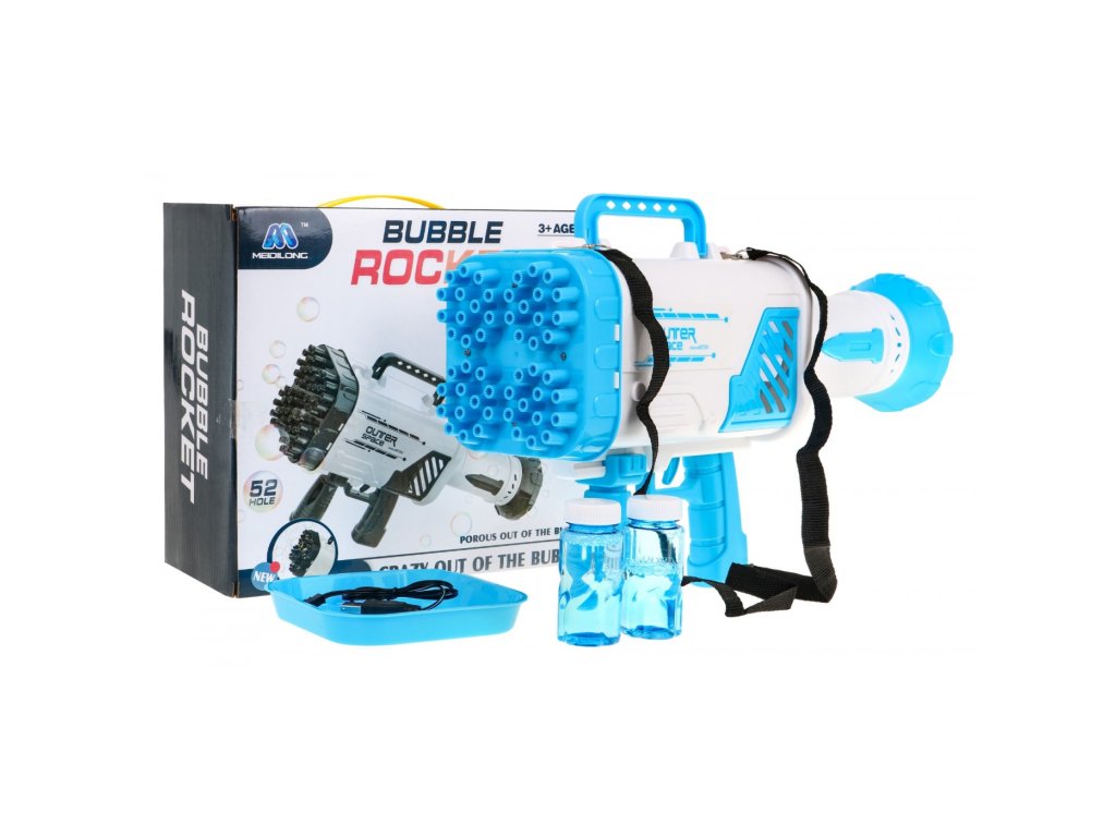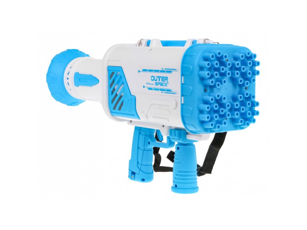 Dětská pistole má 52 otvorů, z kterých vychází bubliny. Manipulace s hračkou je velmi jednoduchá, stačí nalít trochu bublinkové tekutiny do nádoby, který je součástí sady a ponořit do něj hlavu pistole. Poté stiskněte spoušť strojku, ze kterého začnou vycházet krásné barevné bublinky. Bublinový stroj lze použít i jako malý přenosný ventilátor.