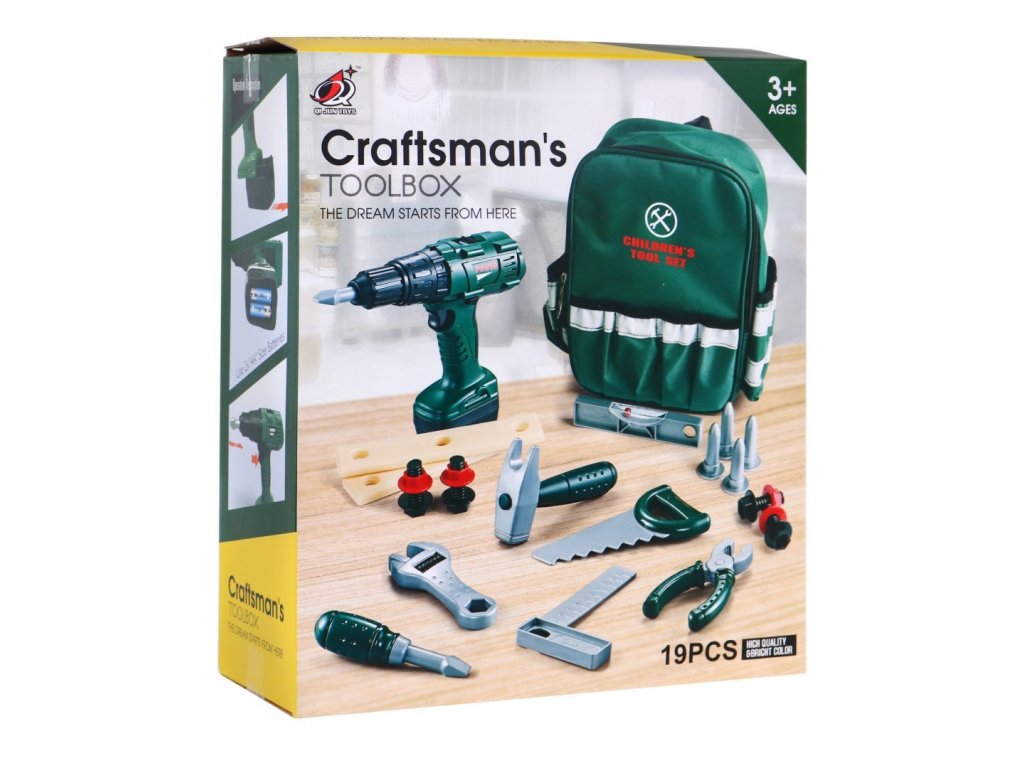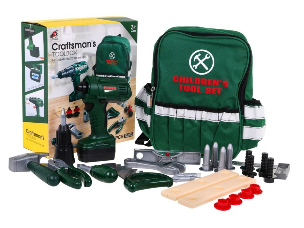 Dětská sada nářadí v batohu zelená