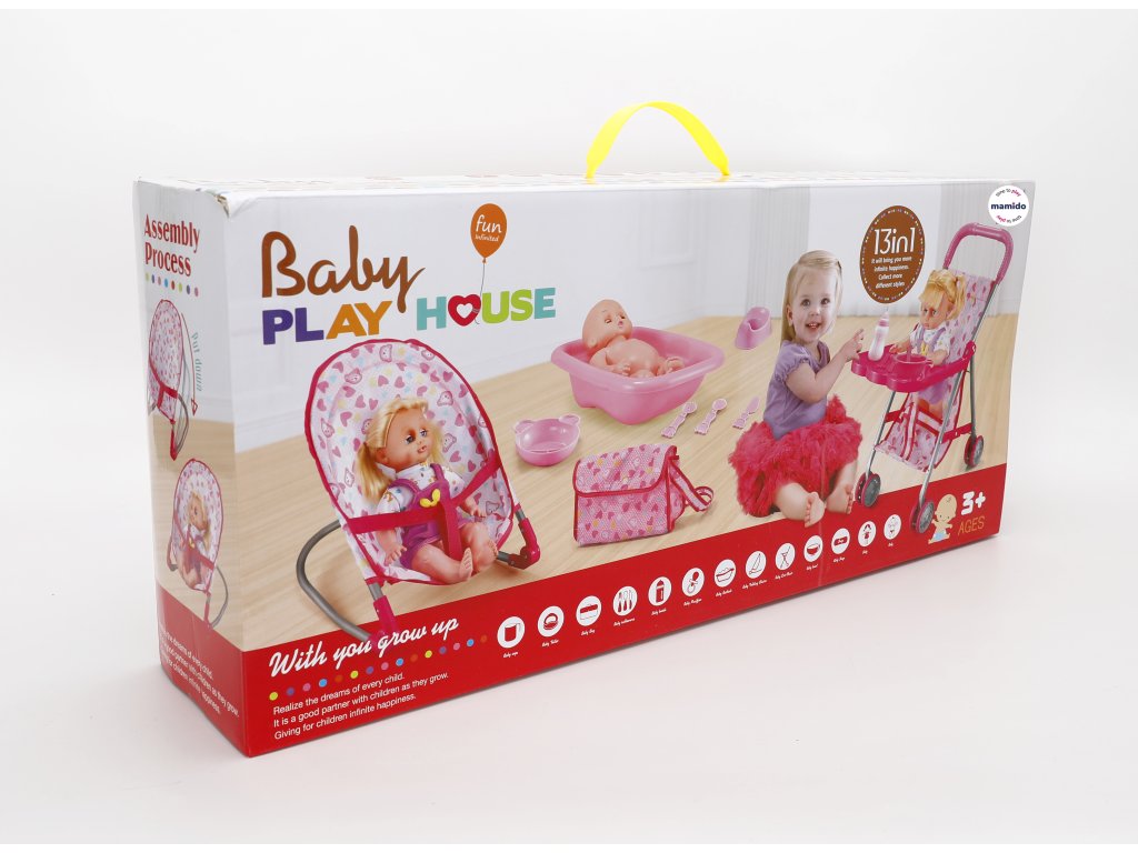 Tato sada přináší kompletní výbavu pro hraní na péči o miminko. Součástí balení jsou různé doplňky, díky kterým dítě může krmit, koupat, vozit v kočárku nebo ukládat panenku do sedačky. Set podporuje hru na role, rozvoj fantazie a napodobování opravdové péče o miminko.