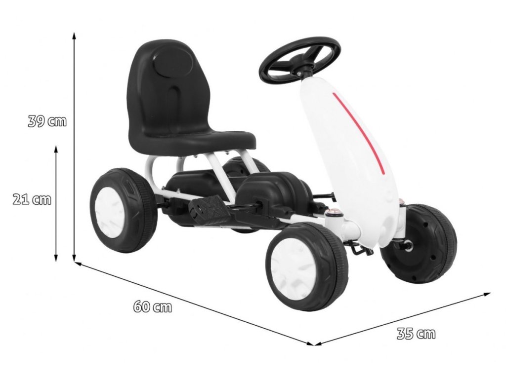 Dětské šlapadlo v podobě motokáry je tím pravým společníkem pro rozvoj pohybu Vašeho dítěte. Díky kolům z tvrdého plastu dítě může jezdit i po terénech, které nejsou jen hladké a rovné. Šlapadlo má ergonomicky tvarované a pohodlné sedátko, takže dítě dokáže jezdit celý den v naprostém pohodlí. Šlapadlo dítě ovládá s pomocí sportovního volantu. Dětská motokára funguje na šlapací pohon. Je bezmotorová, tedy zcela nehlučná a nezatěžuje životní prostředí. Je to nová forma sportovní aktivity.