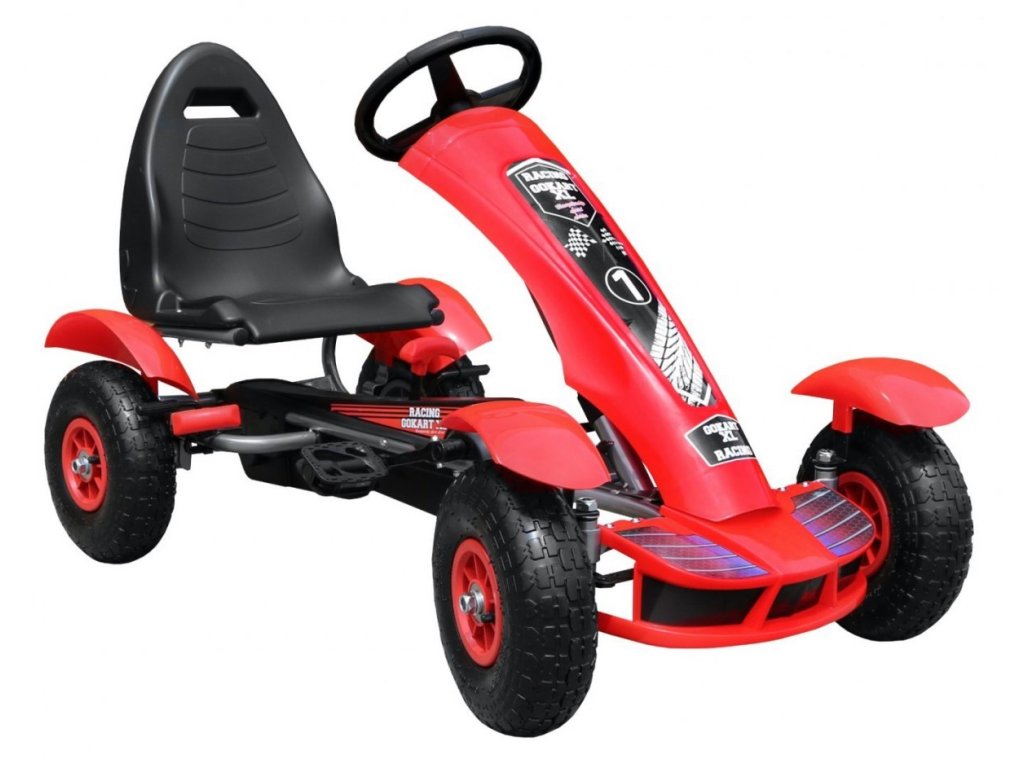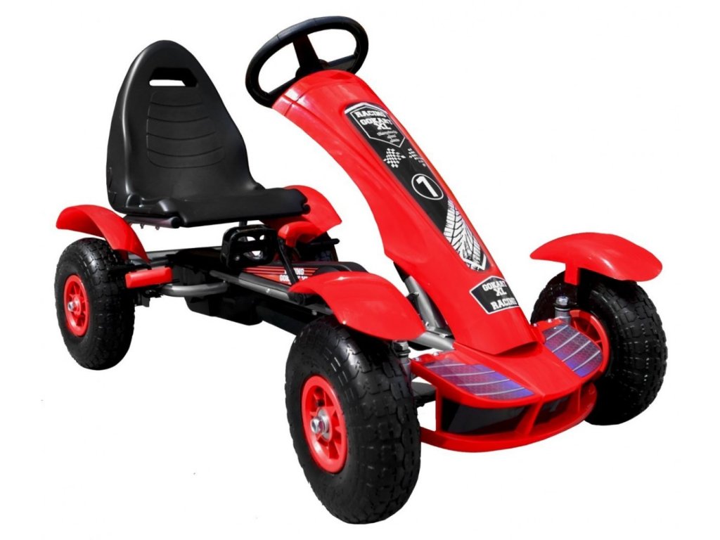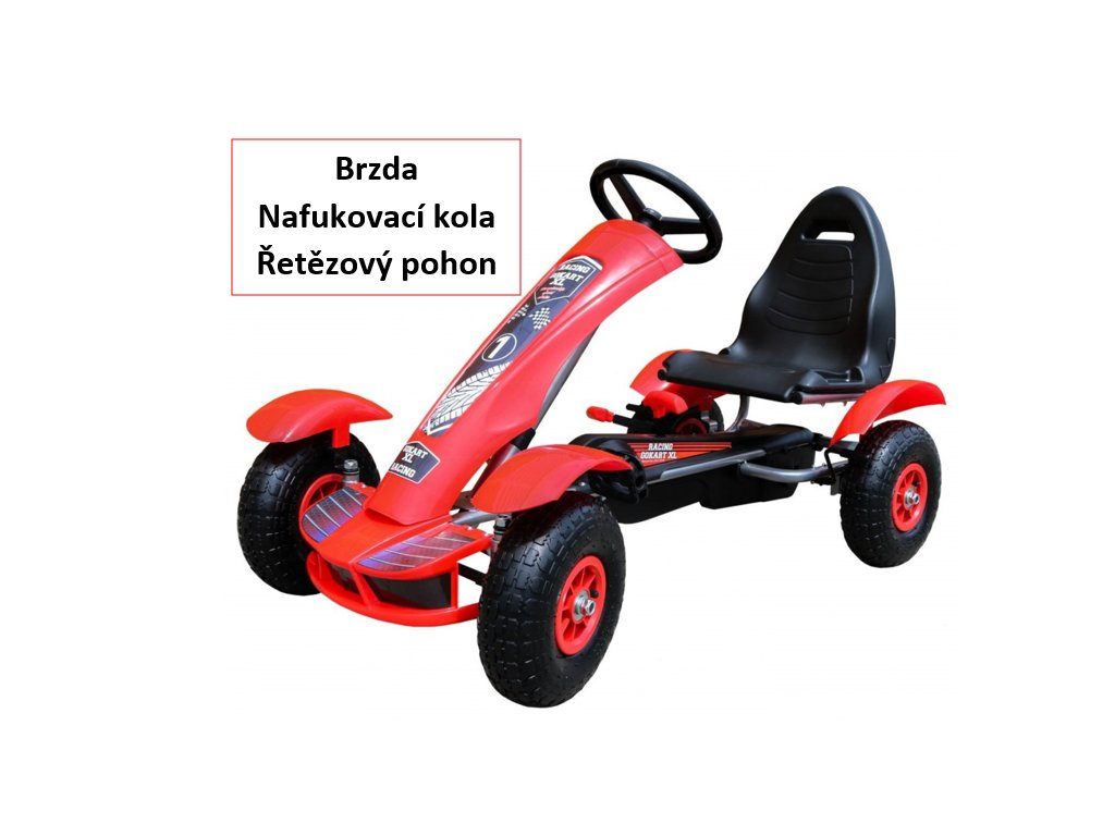 Bezpečná a pohodlná dětská motokára na, které Vaše dítě bude v průběhu jízdy praktikovat svůj pocit rovnováhy a celkovou motorickou koordinaci. Speciálně navržený rám a plošina činí toto vozidlo vhodné pro děti od 3 let. Díky jedinečnému designu a nejkvalitnějším materiálům přizpůsobeným věku jezdců si můžete být jisti bezpečností vašich dětí. Motokára má především nafukovací gumová kola, díky nimž zažijete komfortní jízdu. Motokára se řídí pomocí protiskluzových šlapek jako na kole ( pohon - řetěz ). Motokára má ruční brzdu na 2 kola. Výhoda také nastavitelnosti sedadlo s 3-úrovňovými polohy. Výrobek má evropský certifikát bezpečnosti CE.