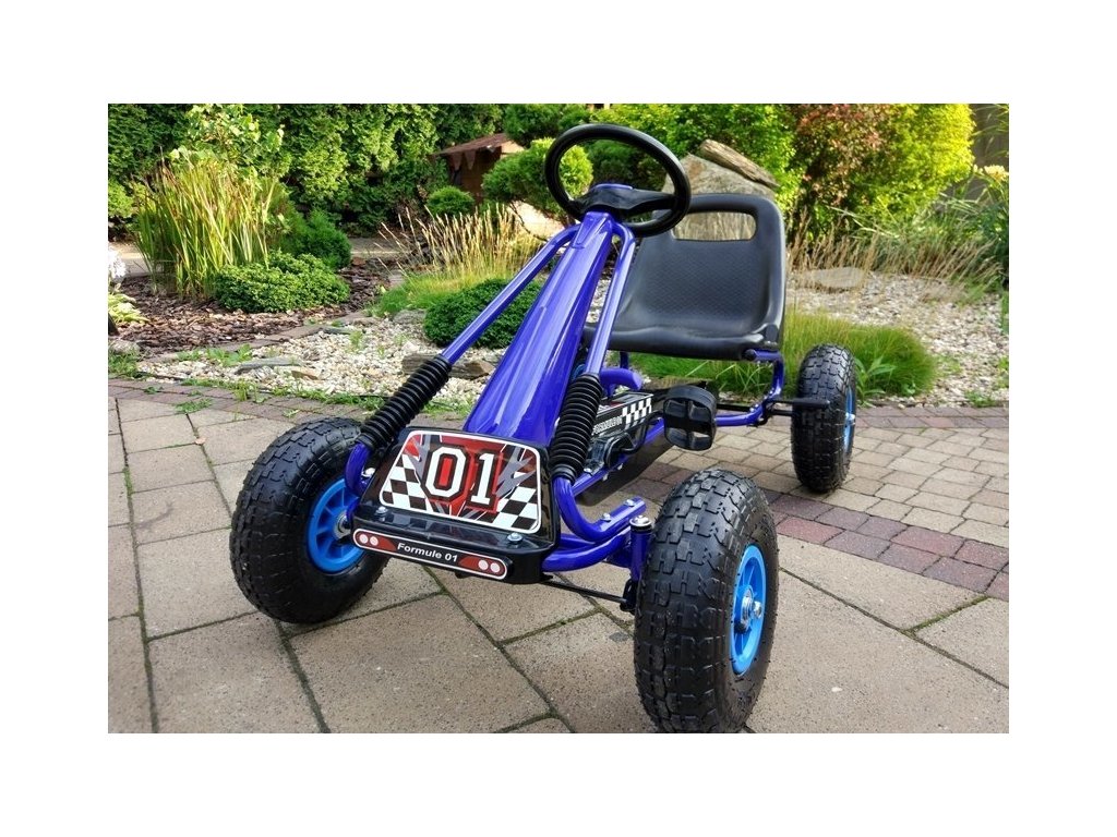 Dětská šlapací motokára s nafukovacími koly A-15 modrá