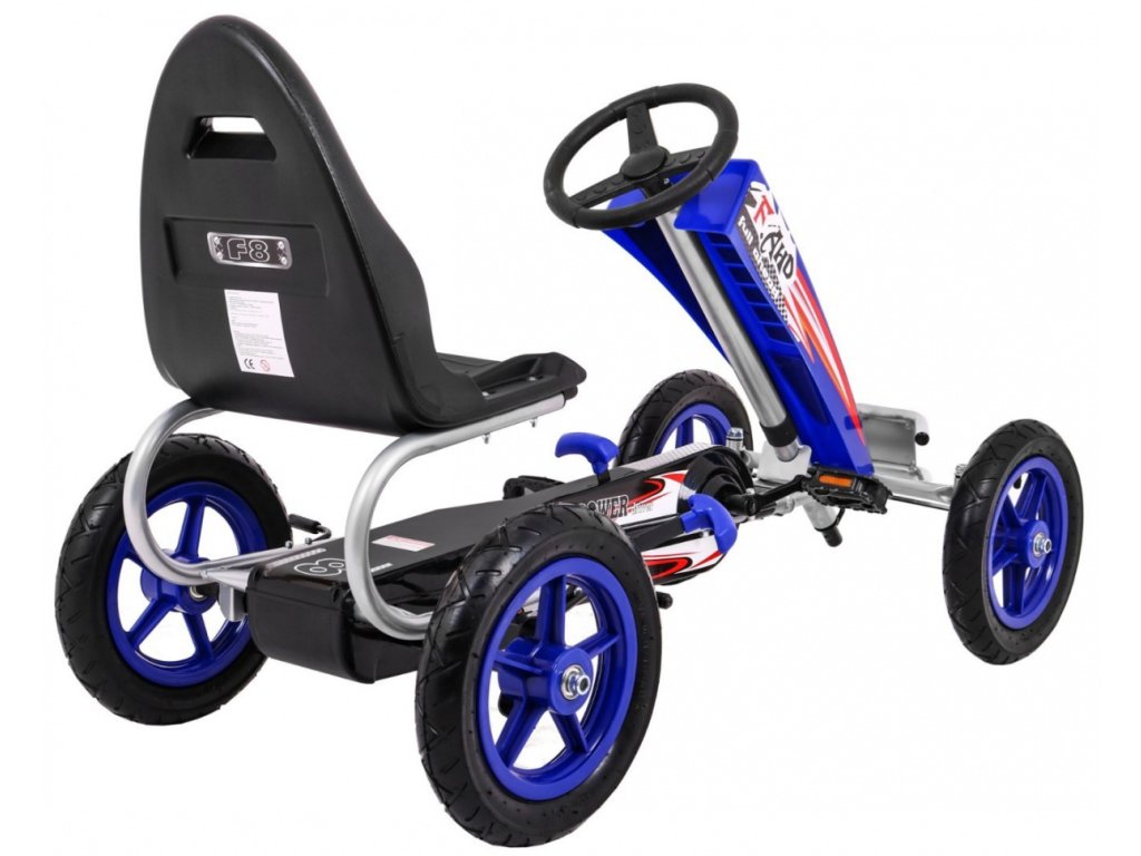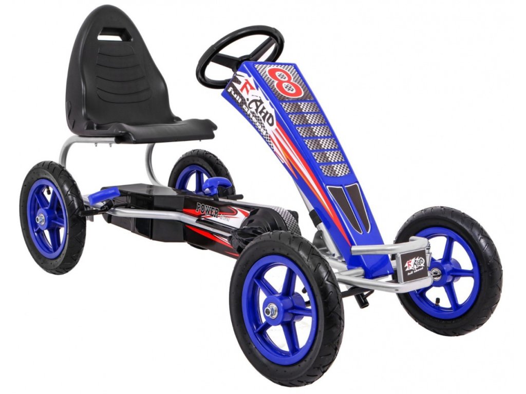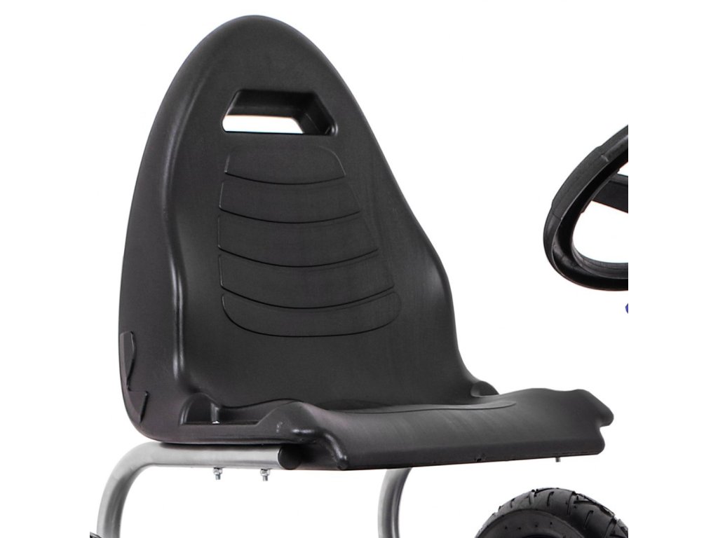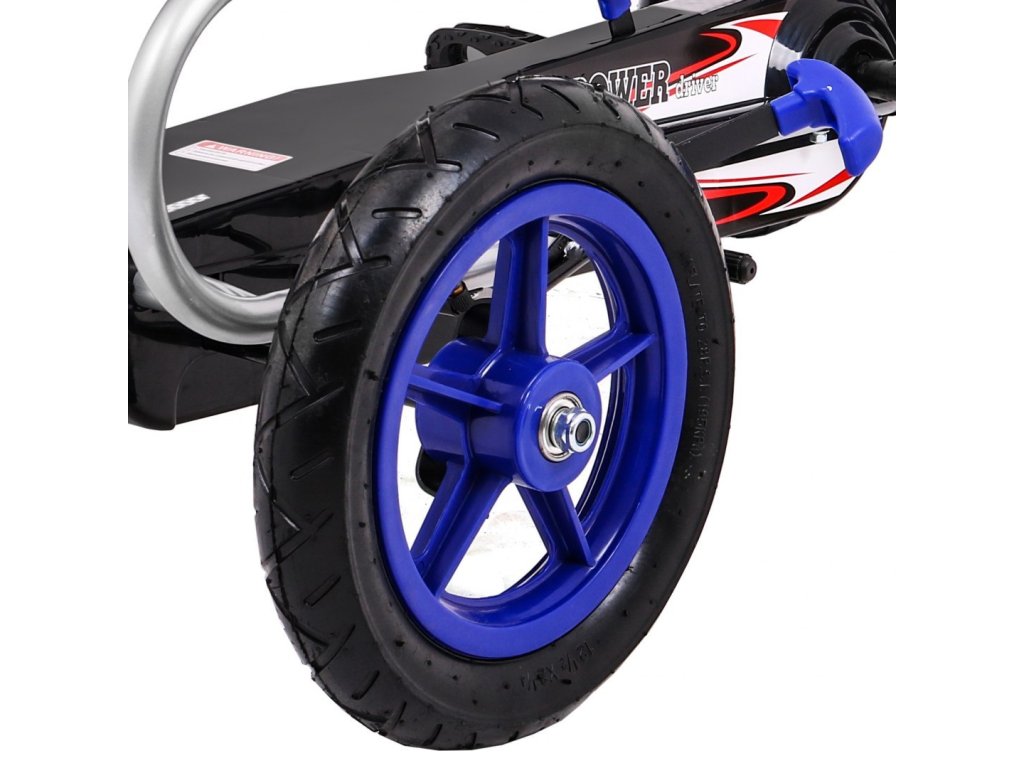 Dětská šlapací motokára s nafukovacími koly byla vyrobena z lehké kovové konstrukce s doplňky z umělé hmoty. Je vybavena nafukovacími gumovými koly a pohodlným, tvarovaným sedákem, který zajistí pohodlí při jízdě.