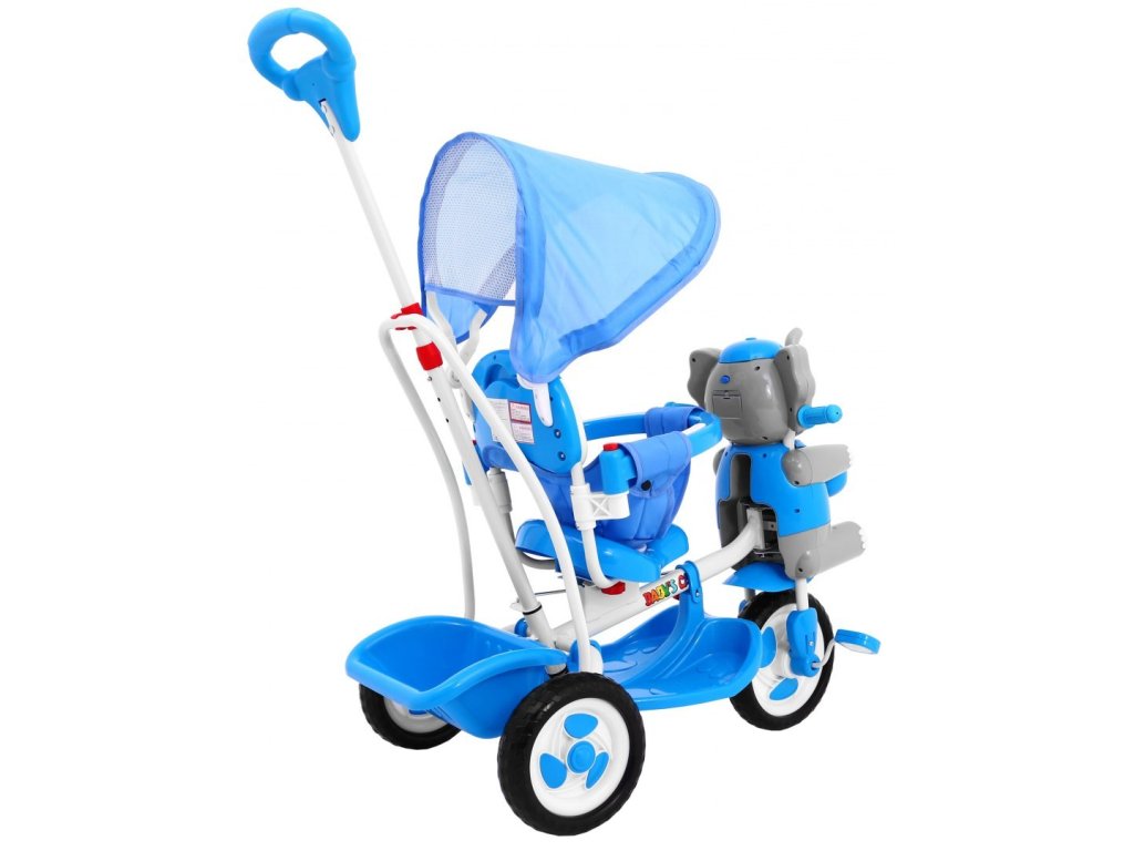 Dětská tříkolka slon se zvukovými efekty modrá