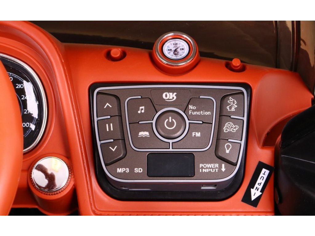 Dětské licencované elektrické autíčko Bentley Bentayga s výkonným elektrickým motorem a Eva koly, která se přizpůsobí různým typům terénu. Dítě se posadí do pohodlně tvarované sedačky z hnědé ekologické kůže.