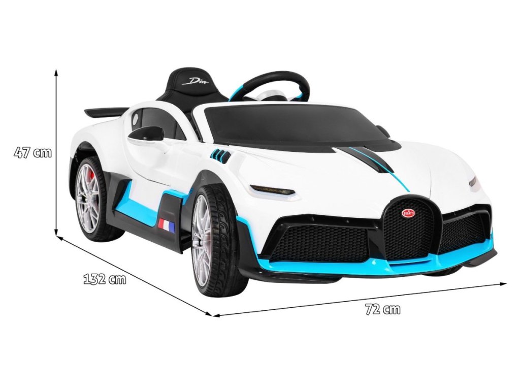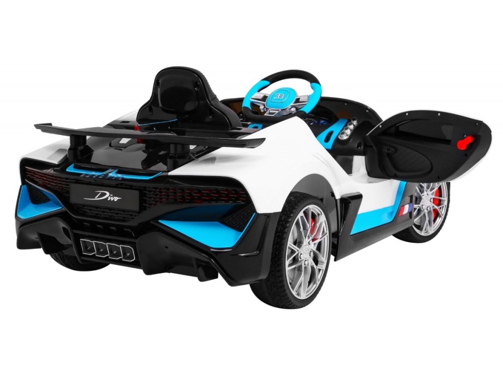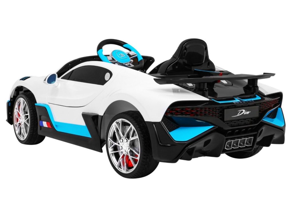 Dětské elektrické autíčko Bugtti Divo přijíždí s výkonným elektrickým motorem a pěnovými Eva koly, která jsou tichá a zvládnou i nezpevněný povrch.