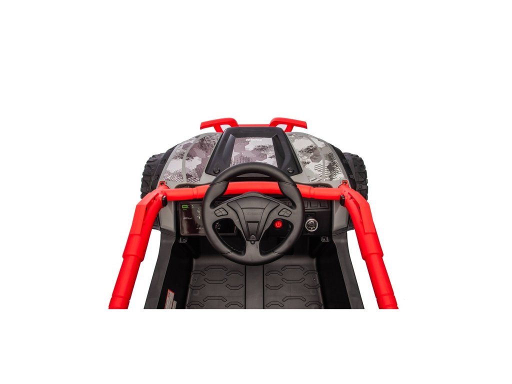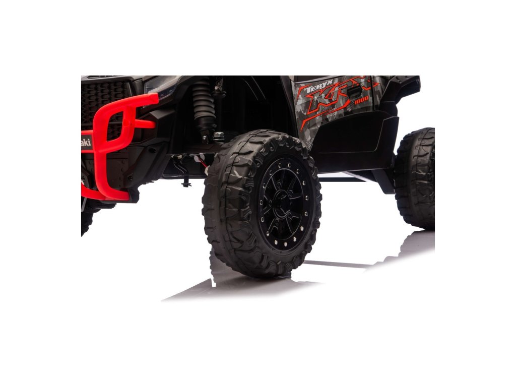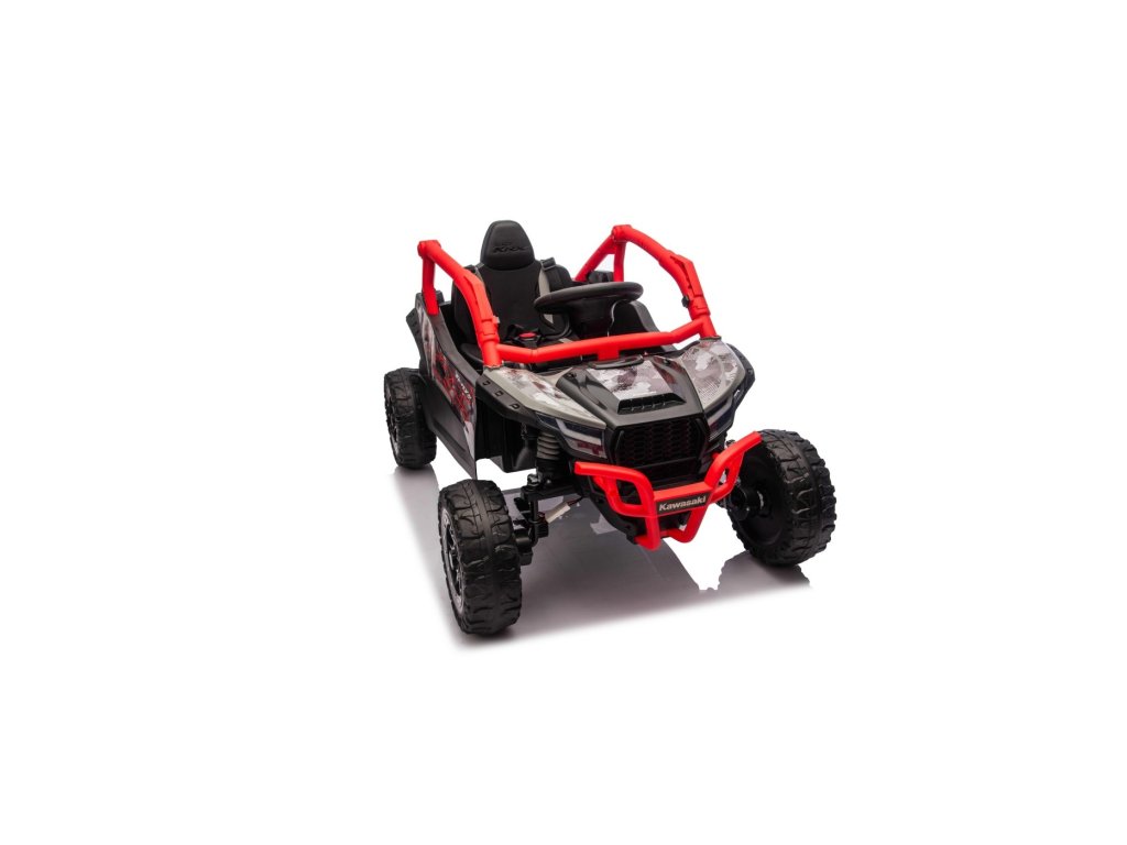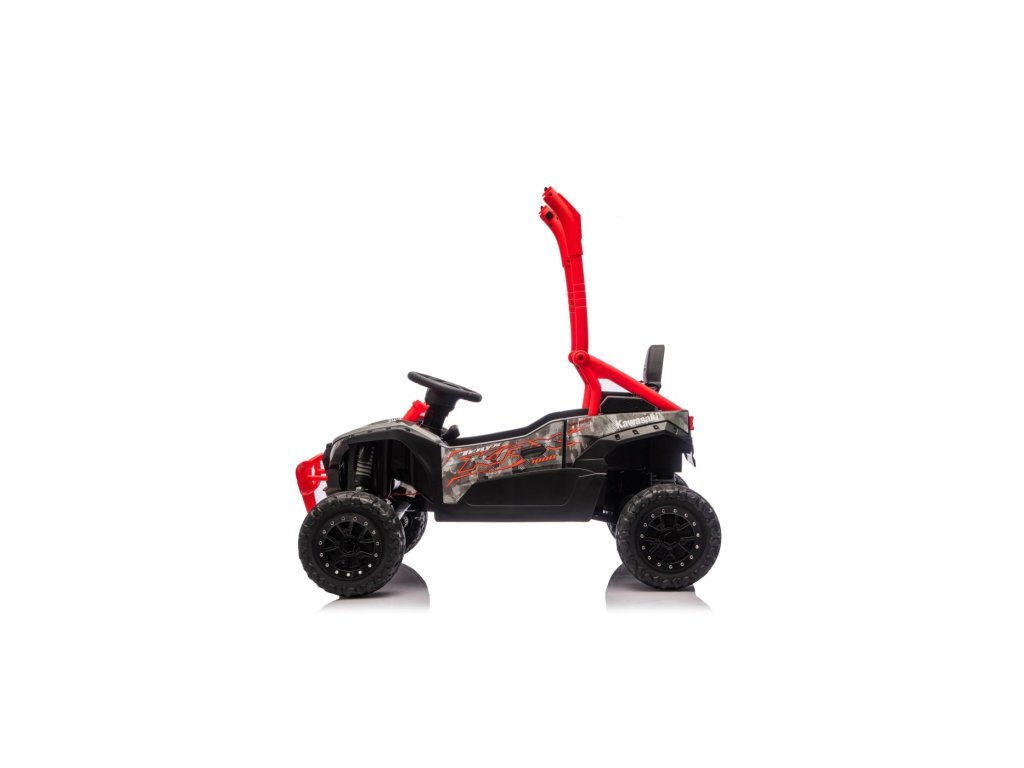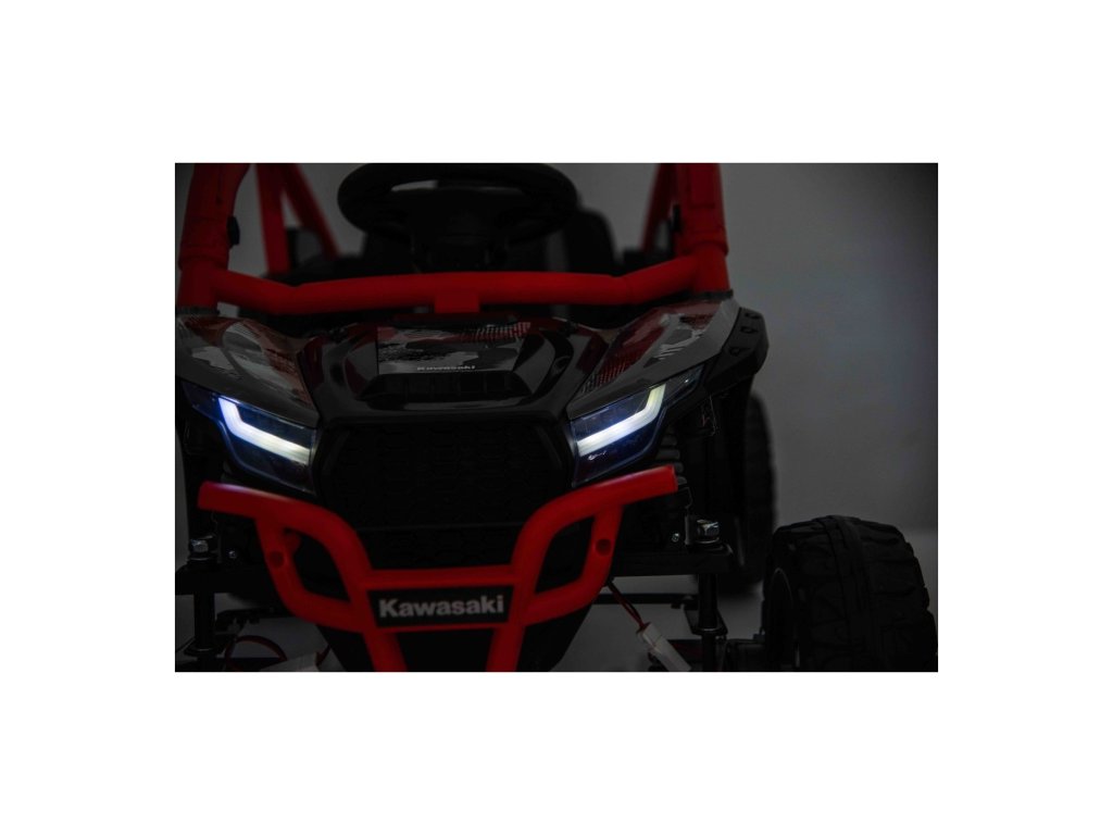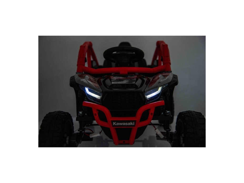 Stylové dětské vozítko Buggy Kawasaki TERYX KRX1000 je ideální volbou pro malé řidiče, kteří milují jízdu v terénu i na hladkém povrchu. Výkonný 24V systém se čtyřmi motory (2× 20W vpředu, 2× 45W vzadu) zajistí dostatek síly i pro nerovný terén. Vozítko je vybaveno měkkými EVA koly, pohodlným koženým sedadlem a bezpečnostními pásy. Díky dálkovému ovládání s funkcí STOP mají rodiče vozítko vždy pod kontrolou. Výbava zahrnuje LED světla, audio panel s Bluetooth, MP3, USB vstupem a dalšími funkcemi.