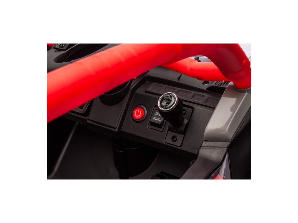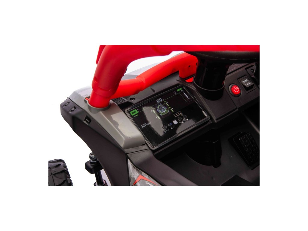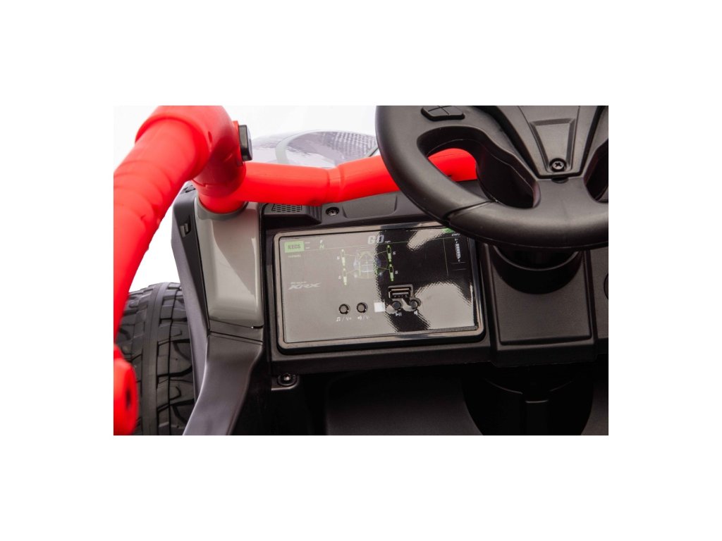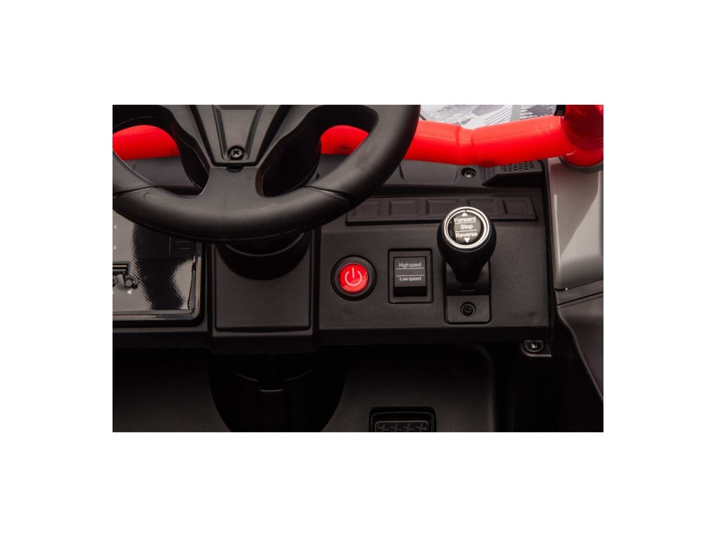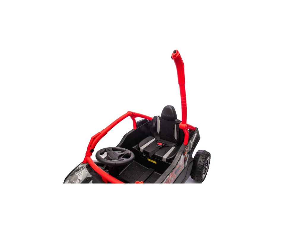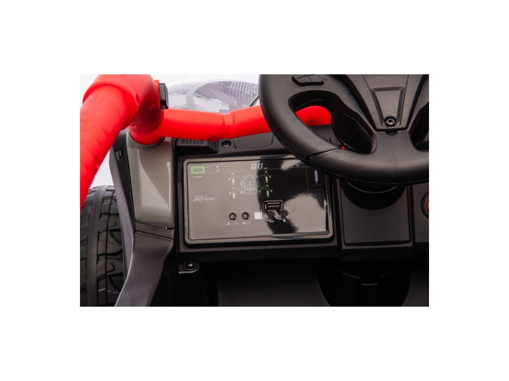 Stylové dětské vozítko Buggy Kawasaki TERYX KRX1000 je ideální volbou pro malé řidiče, kteří milují jízdu v terénu i na hladkém povrchu. Výkonný 24V systém se čtyřmi motory (2× 20W vpředu, 2× 45W vzadu) zajistí dostatek síly i pro nerovný terén. Vozítko je vybaveno měkkými EVA koly, pohodlným koženým sedadlem a bezpečnostními pásy. Díky dálkovému ovládání s funkcí STOP mají rodiče vozítko vždy pod kontrolou. Výbava zahrnuje LED světla, audio panel s Bluetooth, MP3, USB vstupem a dalšími funkcemi.