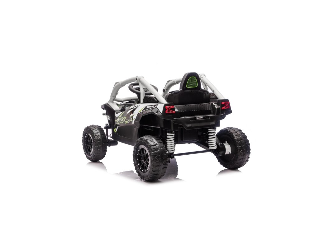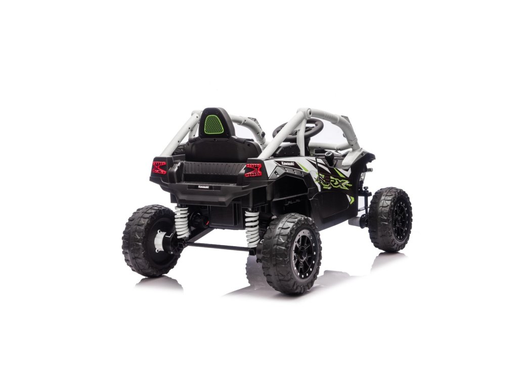 Stylové dětské vozítko Buggy Kawasaki TERYX KRX1000 je ideální volbou pro malé řidiče, kteří milují jízdu v terénu i na hladkém povrchu. Výkonný 24V systém se čtyřmi motory (2× 20W vpředu, 2× 45W vzadu) zajistí dostatek síly i pro nerovný terén. Vozítko je vybaveno měkkými EVA koly, pohodlným koženým sedadlem a bezpečnostními pásy. Díky dálkovému ovládání s funkcí STOP mají rodiče vozítko vždy pod kontrolou. Výbava zahrnuje LED světla, audio panel s Bluetooth, MP3, USB vstupem a dalšími funkcemi.