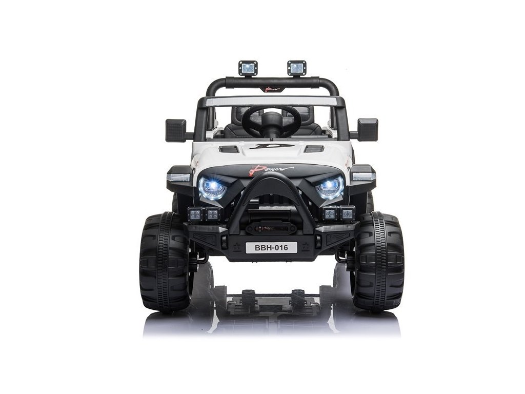 Mezi skvělé vlastnosti autíčka patří možnost propojení hudebního panelu s MP3 zařízením, USB či SD kartou. Jeep je vybaven předními LED světly.