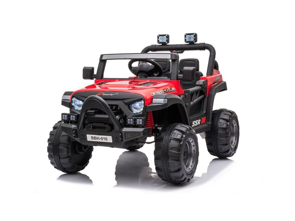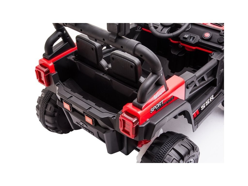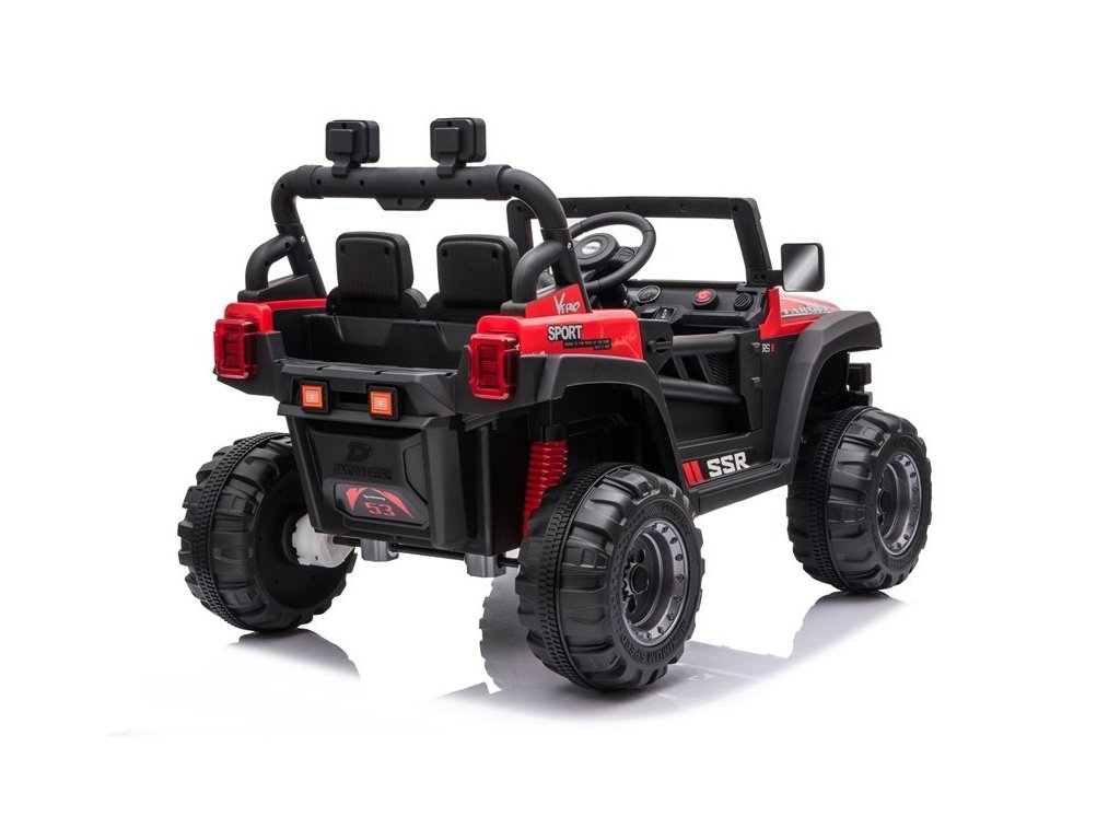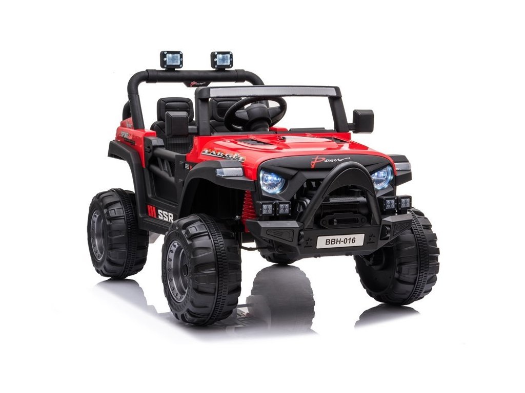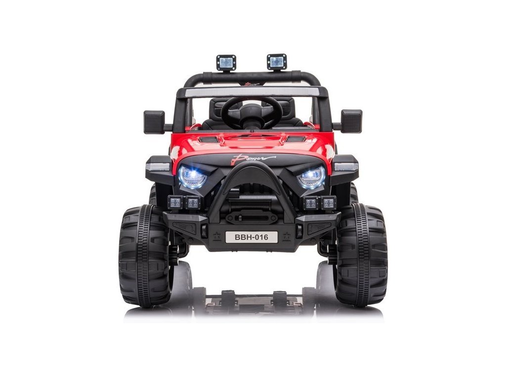 Mezi skvělé vlastnosti autíčka patří možnost propojení hudebního panelu s MP3 zařízením, USB či SD kartou. Jeep je vybaven předními LED světly.