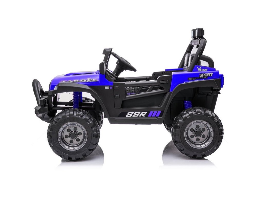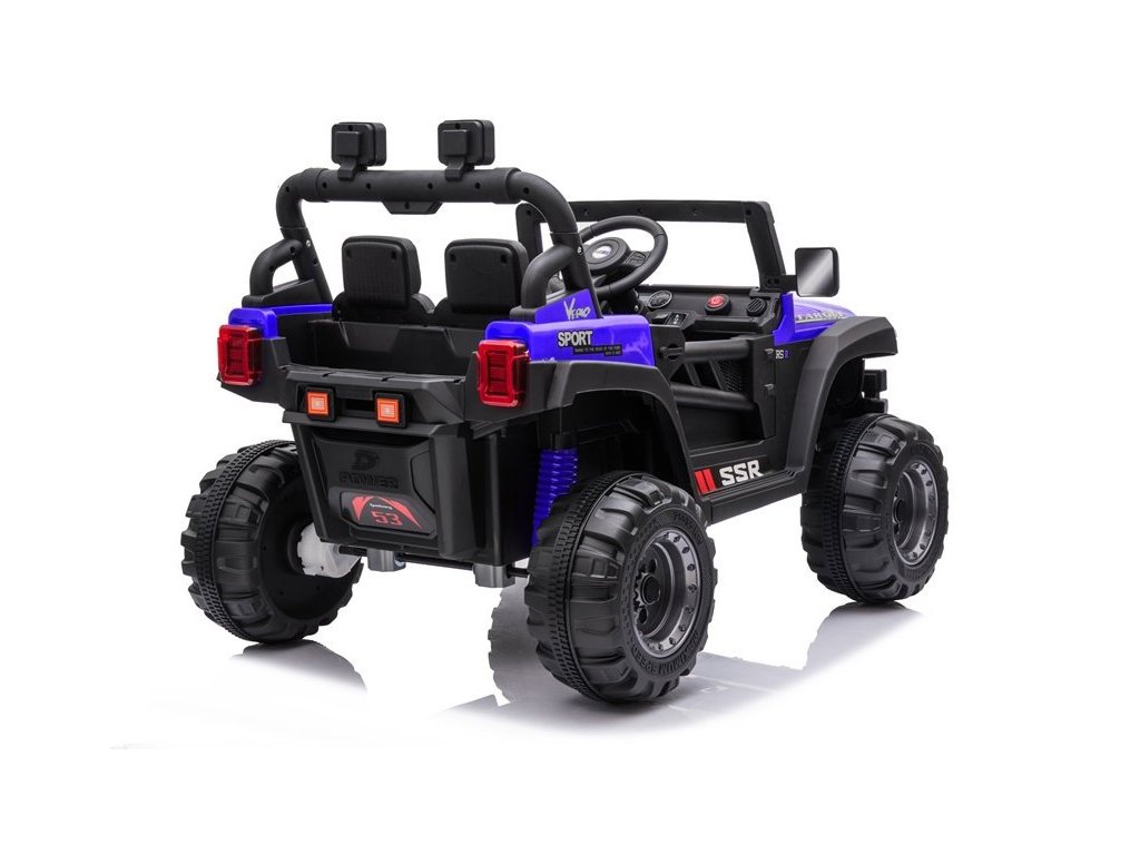Co skrývá elektrické autíčko „pod kapotou“? Dva 45W motory, 12V 7 Ah baterií a třístupňovou automatickou převodovku. Nezní to lákavě? Další výhodou jsou měkká kola EVA, přední LED světla a hudební panel. Autíčko má plynový pedál, ale je také možné využít funkci "stop" na dálkovém ovladači.
