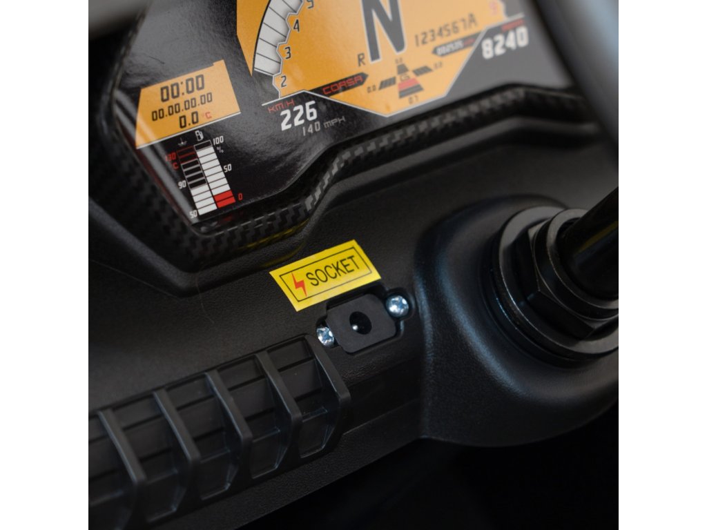Černá sedačka je vyrobená z měkké ekologické kůže, což výrazně zvyšuje komfort jízdy, zatímco otočný volant je svou velikostí a hmotností přizpůsoben rukám několikaletých dětí, aby zajistil snadné manévrování a vyhýbání se překážkám. Na palubní desce je hudební panel s USB portem, AUX portem a bluetoothem. Použití elektrického autíčka je velmi intuitivní a jednoduché - vše, co musíte udělat, je zapnout tlačítko, poté sešlápnout plynový pedál a jet opatrně. Můžete také použít druhé řešení - sada obsahuje spolehlivé dálkové ovládání 2,4 GHz, které vám umožní ovládat auto.