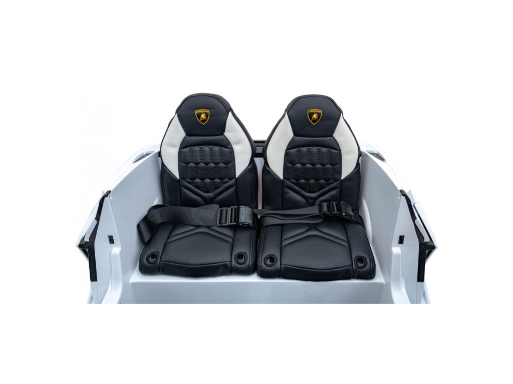 Dětské elektrické auto Lamborghini Revuelto spojuje špičkový výkon, pohodlí a styl věrný originálu. Čtyři výkonné motory po 200 W, velká pěnová kola EVA a zadní odpružení zajišťují hladkou jízdu po rovném povrchu i mírném terénu. Dvojité sedadlo potažené ekokůží s bezpečnostními pásy, LED osvětlení a otevírací dveře dodávají vozu realistický vzhled a bezpečí.