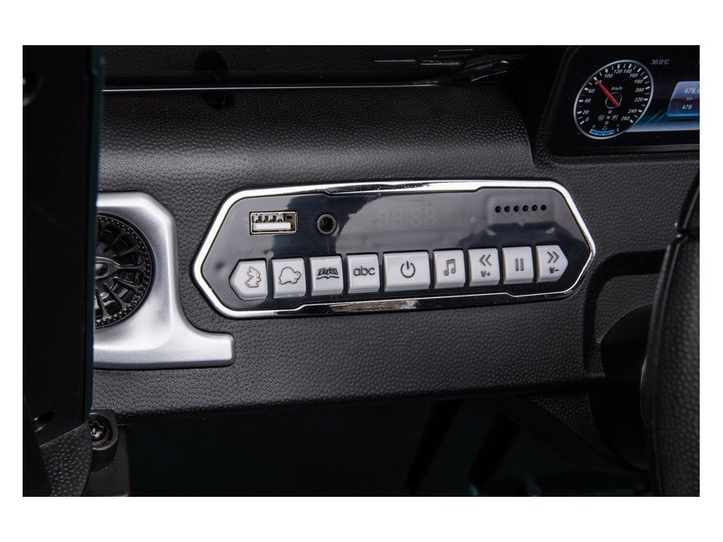 Mezi vybavení patří sedadlo z měkké ekologické kůže s bezpečnostními pásy, hudební panel se vstupy USB, MP3 a FM rádiem a přední i zadní LED světla.