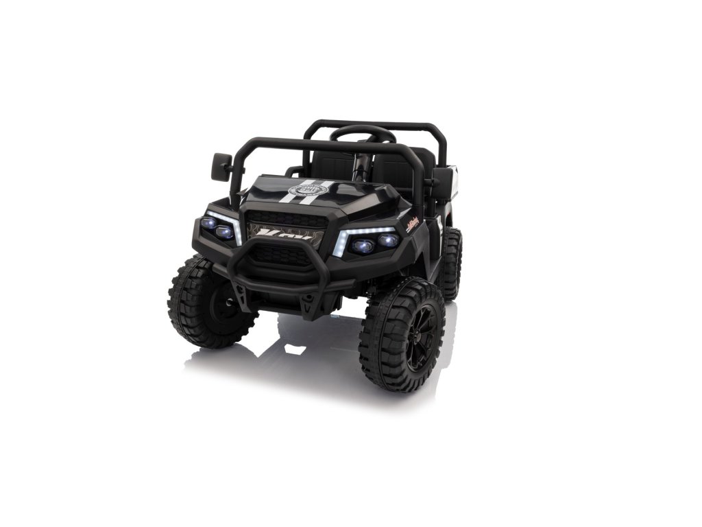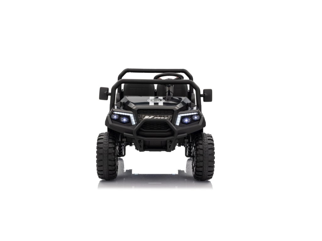 Auto má pohodlná dvě sedadla potažená eko kůží, vybavená bezpečnostními pásy. Kromě realistického zvuku motoru a LED světel (přední i zadní) potěší i multimediální panel s Bluetooth, FM rádiem, MP3 a vstupem na USB. Na volantu najdeme také klakson a ovládací tlačítka pro zvuky.