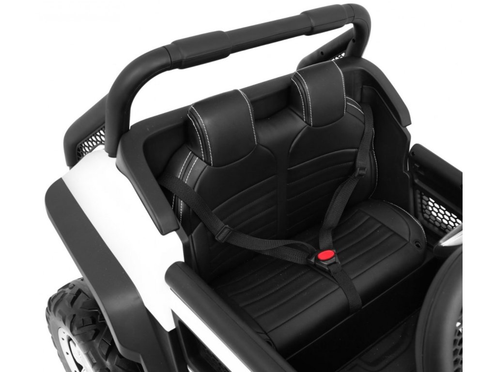 Mezi bohaté vybavení patří audio panel se vstupem MP3, SD, AUX a USB. Svou oblíbenou rádiovou stanici si můžete pustit díky FM rádiu či propojit autíčko se zařízením Bluetooth. Dítě se posadí do pohodlně tvarované sedačky z měkké ekologické kůže. Na cestu si posvítí předními i zadními LED světly.