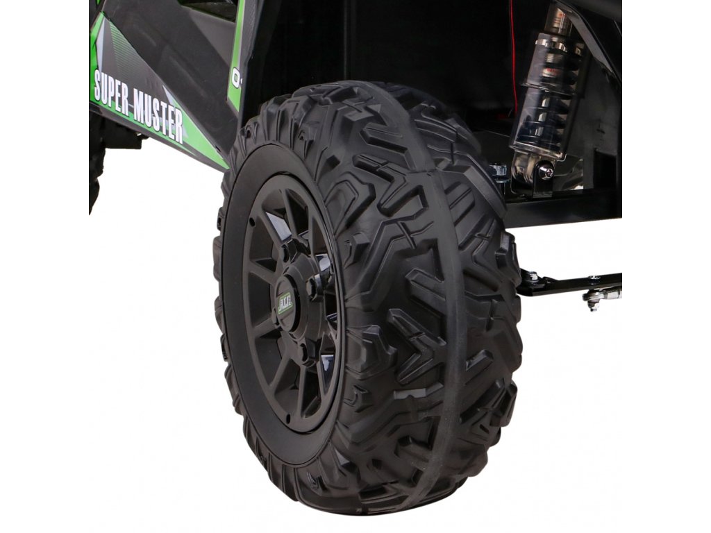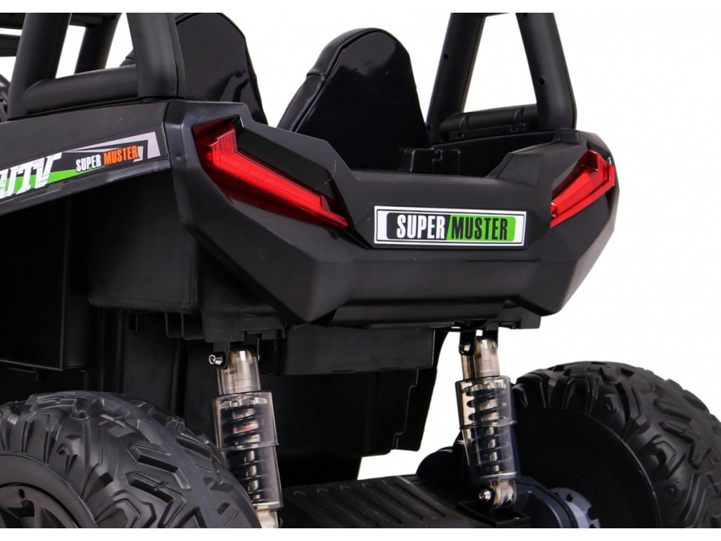 Dětské elektrické auto Buggy UTV se dvěma výkonnými elektrickými motory 200W. Autíčko hravě zvládne jakýkoliv terén. Do sedačky z měkké ekologické kůže se pohodlně posadí i dvě děti, jelikož se Buggy pyšní nosností až do 50 kg.