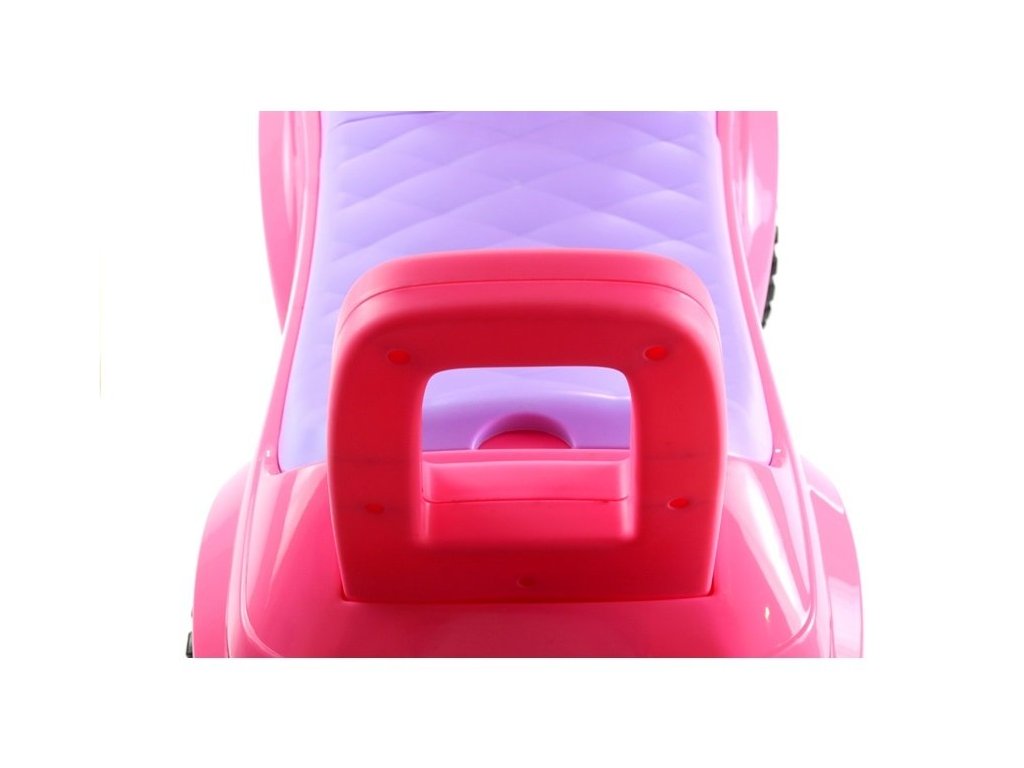 Růžové odrážedlo je z velmi lehké konstrukce, což usnadňuje řídit. Ve velké, a především měkké sedačce je úložný prostor pro malé předměty dítěte, například hračky, které si chce vzít s sebou na procházku. Pohodlné opěradlo připevněné k sedadlu zajistí, že si batole při hraní udržuje rovné držení těla a také se cítí pohodlně. Velká, široká kola vám umožní zvolit různé povrchy, díky nimž bude auto jezdit doma i na zahradě. Nosnost je 27 kg, a proto bude určitě sloužit vašemu dítěti po dlouhou dobu.