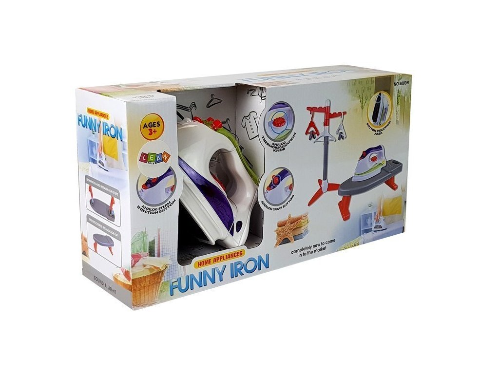 Od dnešního dne můžete mít doma své vlastní pomocníky. Žehlící prkno má délku 42 cm, má realistický výřez, kam můžete žehličku odložit. Žehlička má knoflík pro ovládání teploty, když se žehlička přiloží k desce, začne vydávat zvuky žehlení. Žehlička má svítící červenou kontrolku.