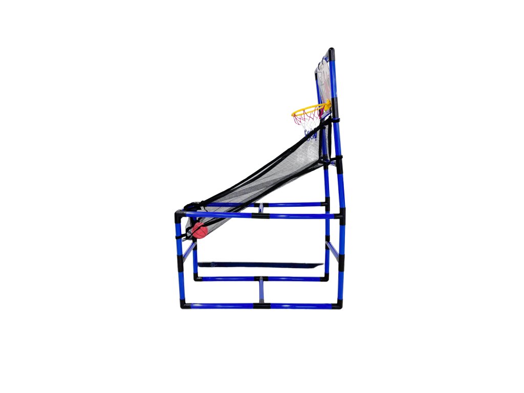 Užijte si hodiny zábavy přímo doma! Tento dětský basketbalový koš s konstrukcí promění obývací pokoj nebo dětský pokoj v malé sportovní hřiště. Stabilní rám z pevných trubek, barevná síť a dva lehké míčky zaručí, že se děti mohou vyřádit při střelbě na koš kdykoli a za každého počasí.