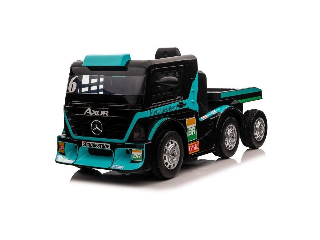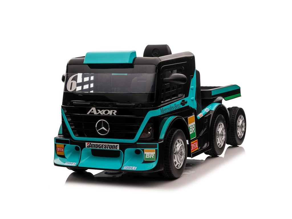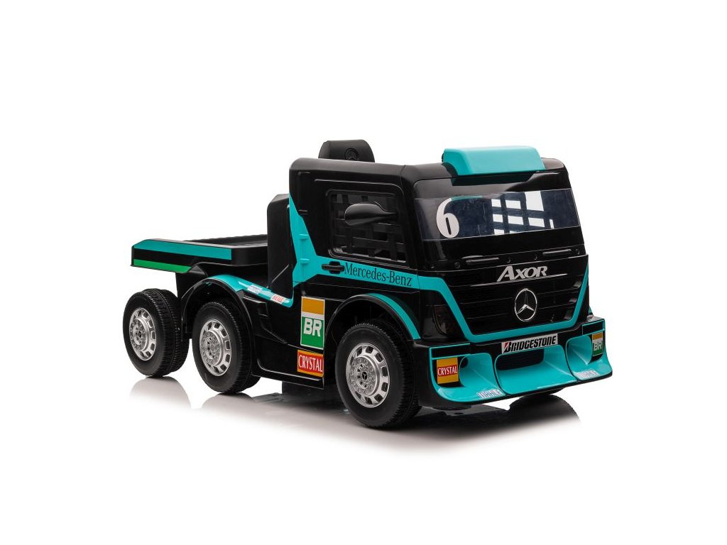 Dětský elektrický kamion Mercedes Axor LCD MP4 s návěsem tyrkysový