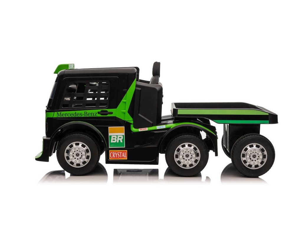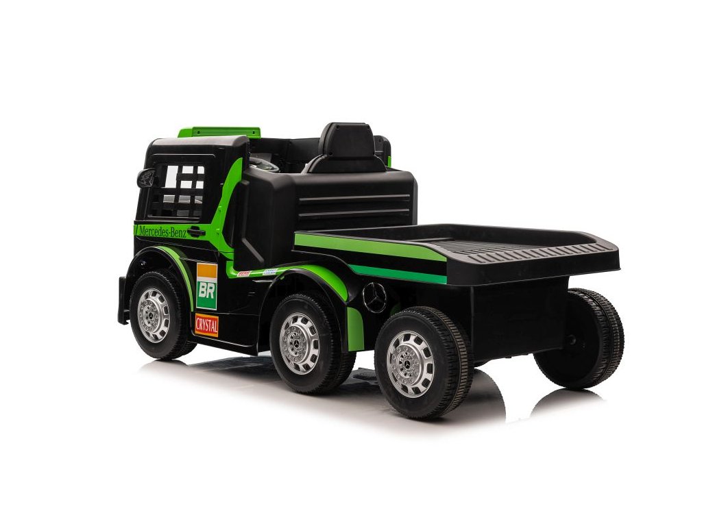 Dětský elektrický kamion Mercedes-Benz Actros s dotykovým LCD displejem a pohodlnou sedačkou z ekologické kůže s bezpečnostními pásy. Dítě smí autíčko ovládat zcela samostatně, avšak do jízdy mohou kdykoliv zasáhnout rodiče pomocí dálkového ovládání. Ovladač je vybaven tlačítky pro změnu směru jízdy ve všech směrech a bezpečnostním tlačítkem STOP, které ihned zastaví vozidlo a vypne všechny jeho funkce.