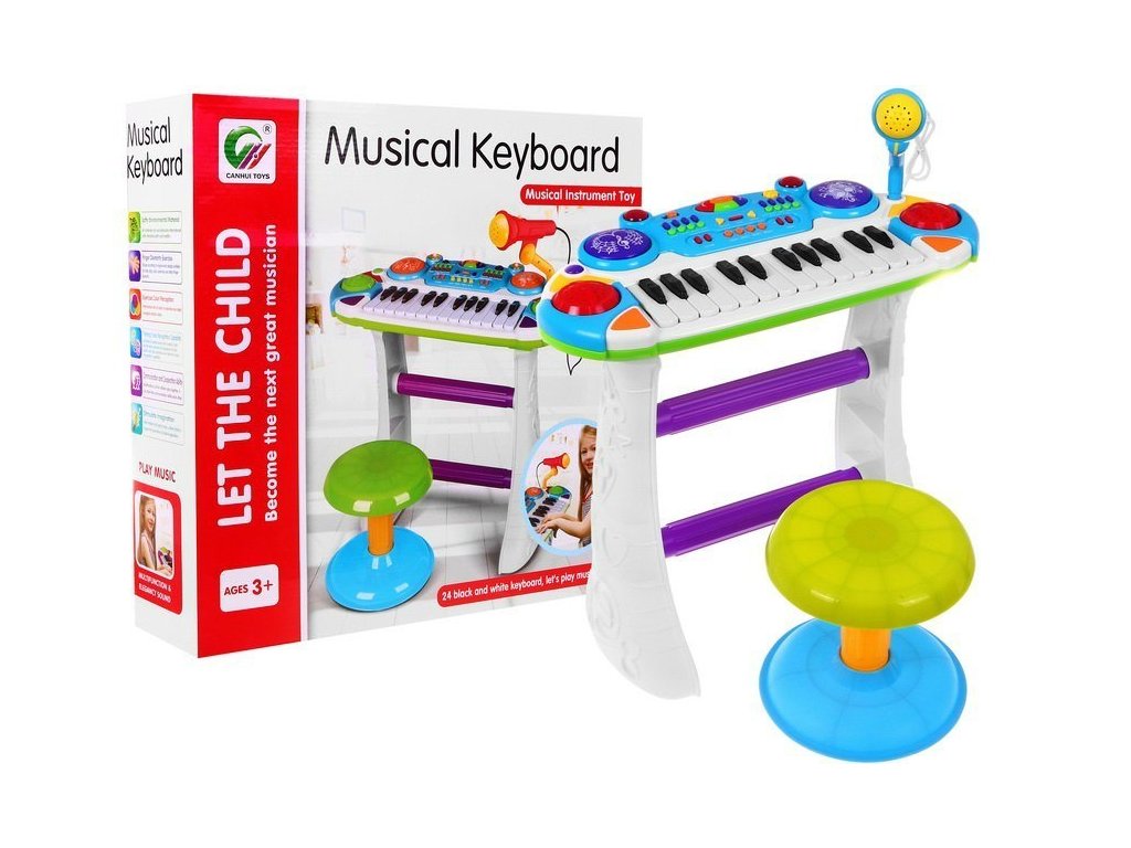 Dětský elektrický keyboard je skvělou alternativou pro všechny malé hudební nadšence, ale i začátečníky. Je vybaven 14 bílými klávesy a 10 černými klávesy. Má stojan s mikrofonem i stoličkou přizpůsobenou pro děti.