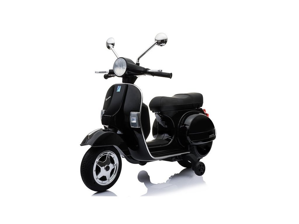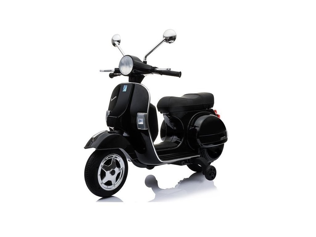 Kdo by neznal skútr značky Vespa? Tento legendární skútr může řídit i Vaše dítě, a to díky tomuto licencovanému modelu. Skútr má kvalitní sedadlo potažené měkkou ekologickou kůží a měkká kola EVA. K tomu všemu krásné přední LED světla a dokáže přehrávat MP3 soubory, takže si dítě může za jízdy poslechnout svou oblíbenou pohádku a zároveň zdokonalovat své řidičské schopnosti