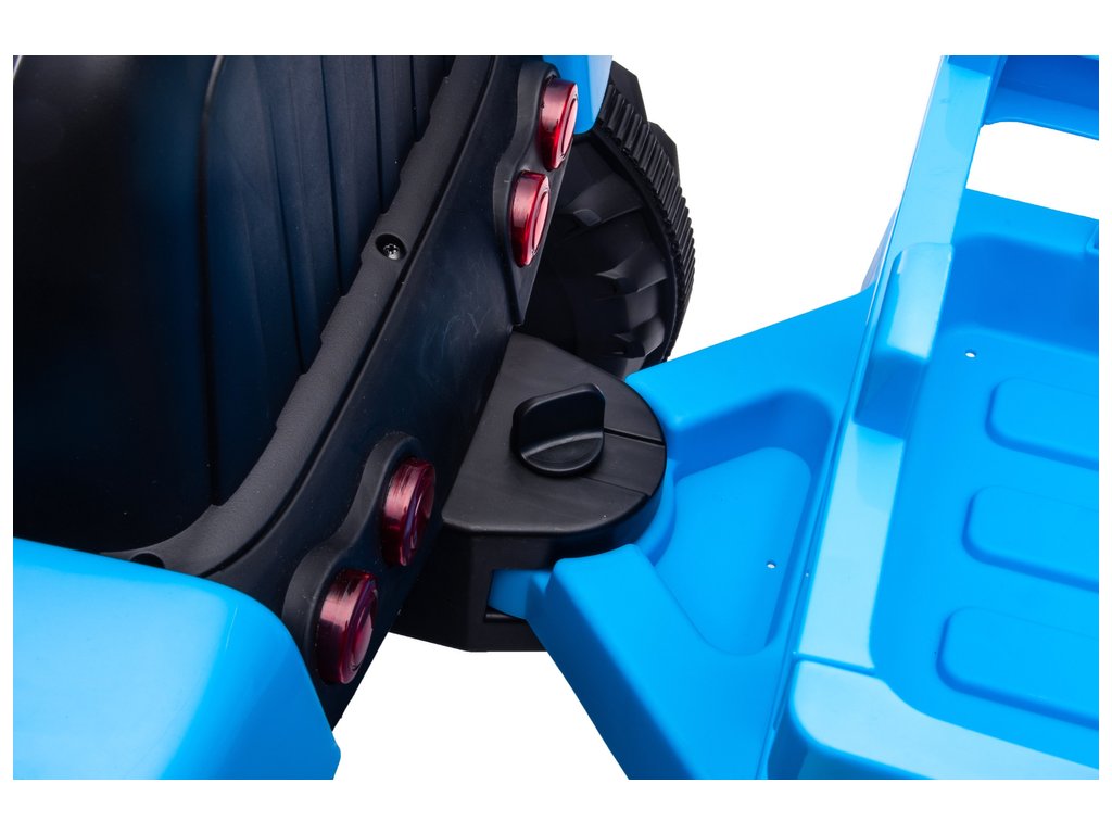 Traktor má plastová kola i sedadlo. Traktor automaticky zastaví po spuštění plynového pedálu. Traktor má přepínač rychlostí, takže umožňuje jízdu pomalu nebo rychle. Traktor dosahuje rychlosti až 5 km/h.