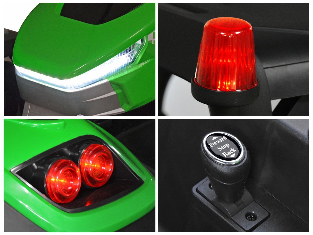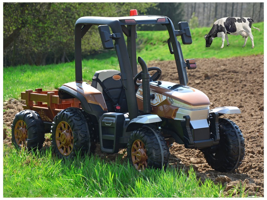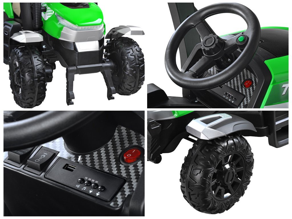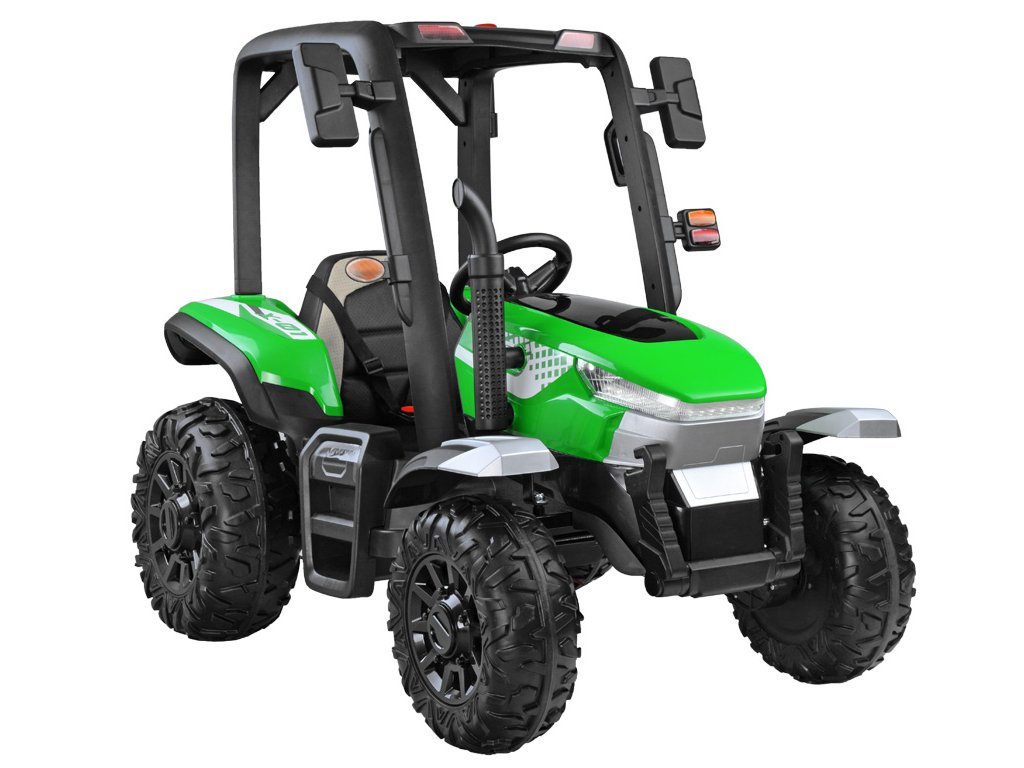 Dětský elektrický traktor BLT s ultra výkonným elektrickým motorem 2x200W a velkými EVA pěnovými koly hravě zvládne i nerovný terén.