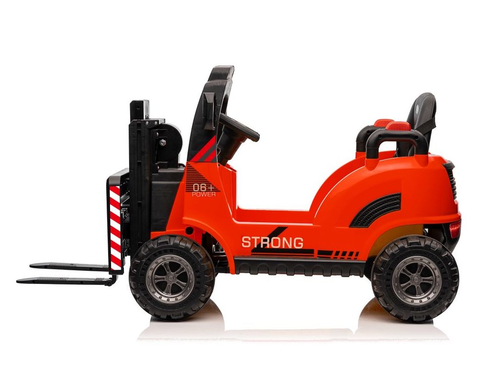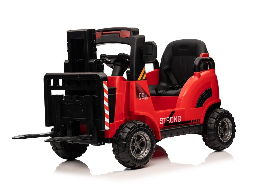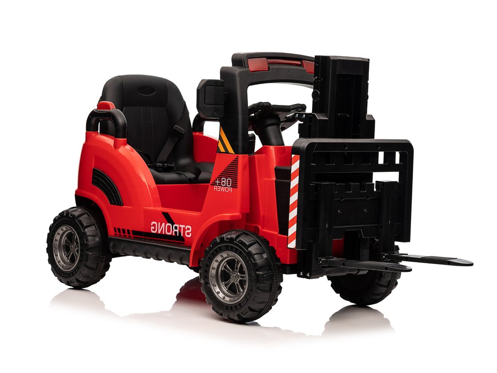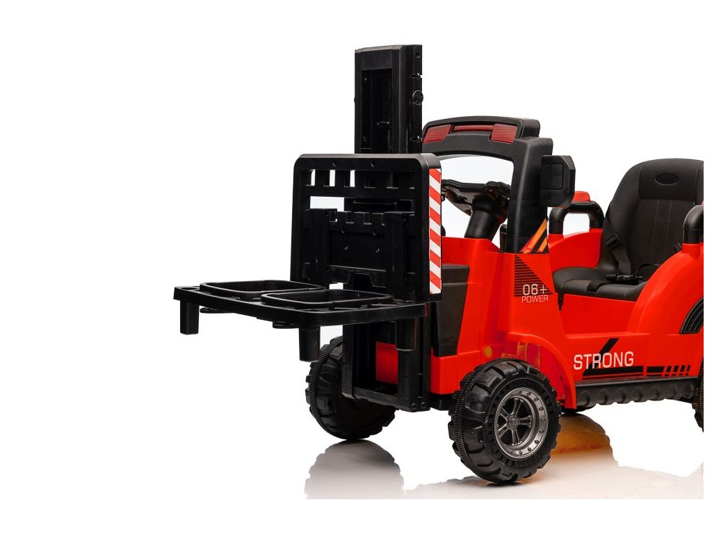 Dětský elektrický vysokozdvižný vozík se díky své konstrukci a mohutným kolům přizpůsobí nejen zpevněnému terénu. Má dva motory o celkovém výkonu 90W. Ovládání je velice jednoduché, stačí zmáčknout plynový pedál a můžete vyrazit do terénu. Po spuštění nohy z plynového pedálu se vozík automaticky zastaví. Jízdu jistě zpříjemní možnost pouštění hudby pomoci USB a MP3.