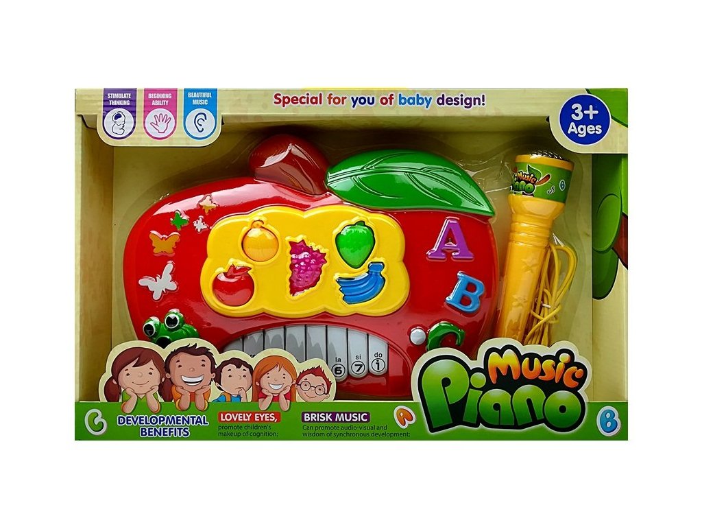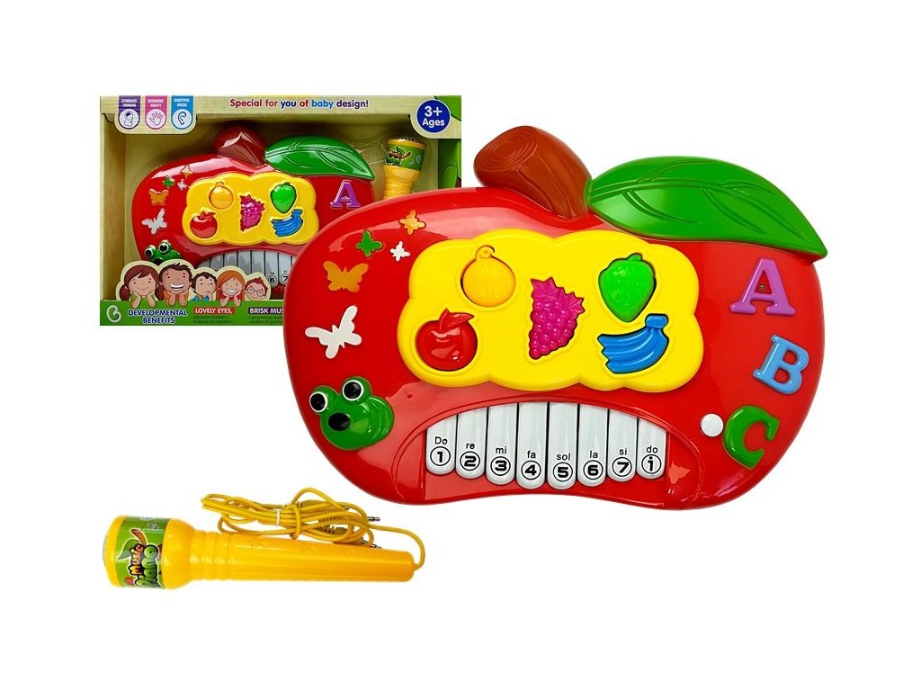 Dětský interaktivní klavír s mikrofonem červené jablko