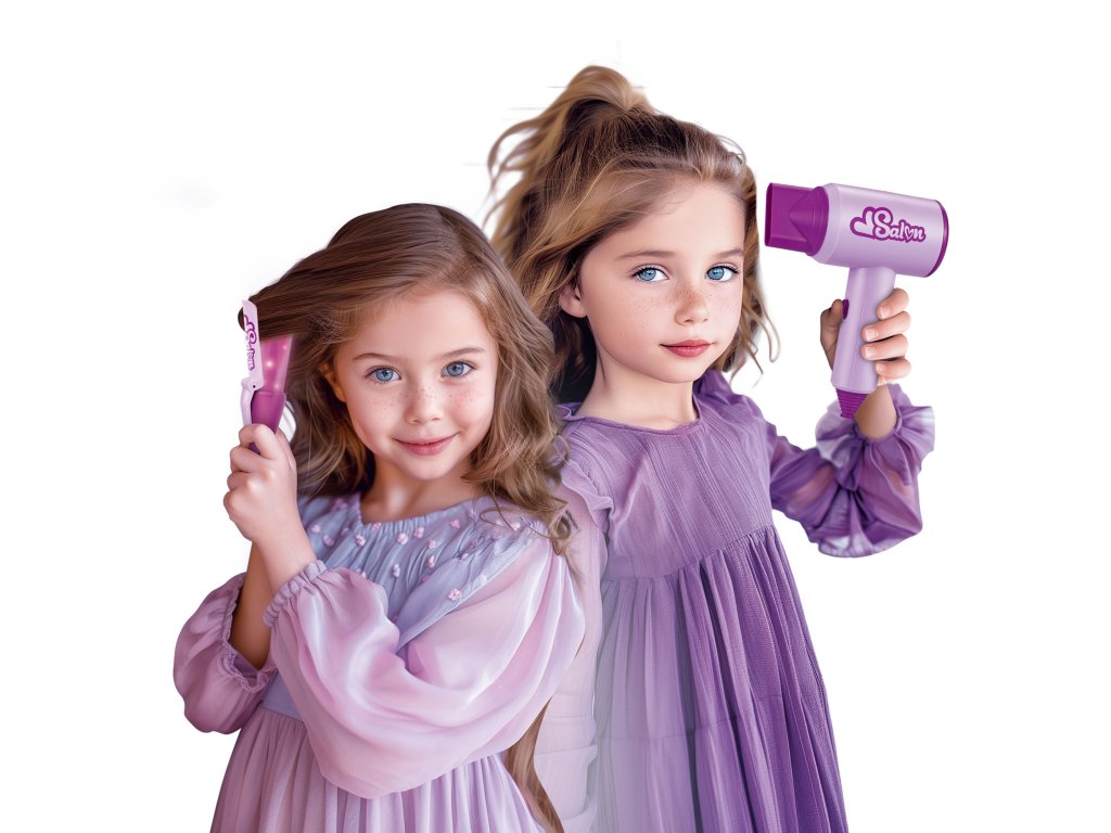 Sada nabízí vše, co je potřeba pro vytvoření krásných účesů. Děti mohou česat, stříhat, foukat i natáčet vlasy. Fén má jednoduché zapínání ON/OFF a dvě výměnné nástavce – hubici a difuzér. Kulma po stisknutí tlačítka svítí, čímž napodobuje skutečný stylingový nástroj. V balení je také kapsa kolem pasu, která umožní pohodlné ukládání nástrojů během „práce v salonu“.