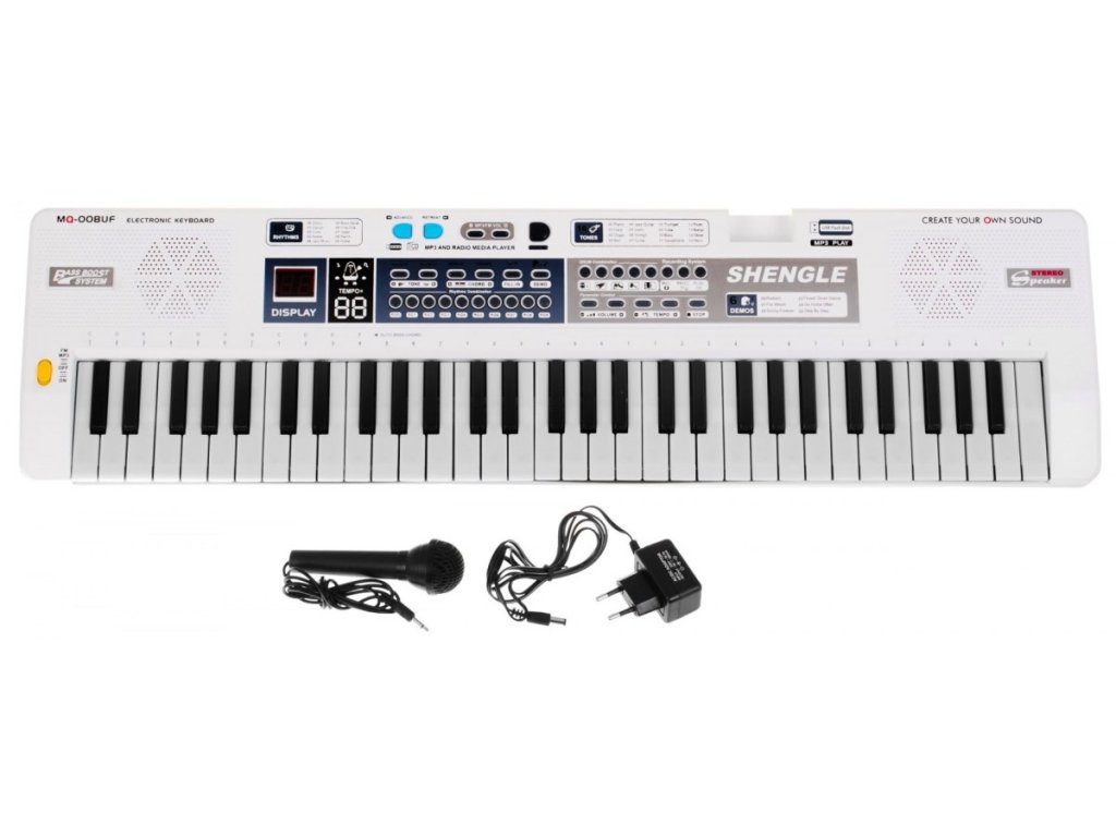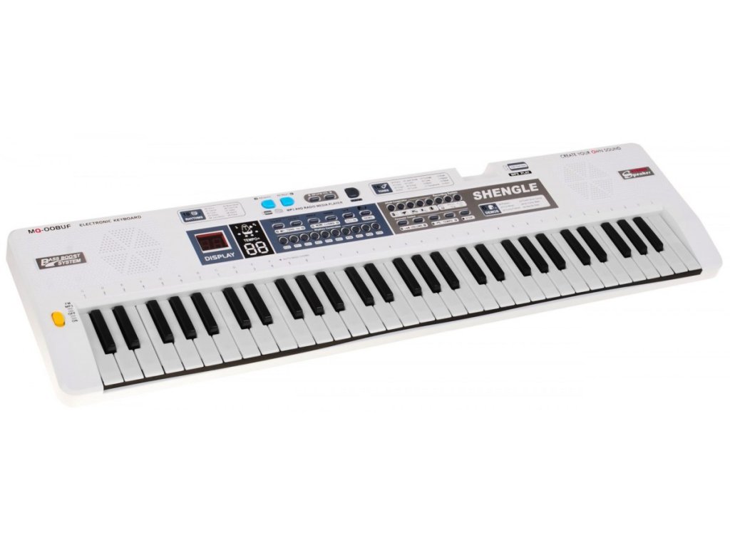 Fantastický dětský keyboard XXL v bílém provedení zabaví každou malou hvězdu na dlouhé hodiny. Keyboard obsahuje až 61 kláves, předem nahrané zvuky hudebních nástrojů a různé rytmy. Další TOP vlastností keyboardu je mikrofon a 2 výkonné reproduktory. Hračka je vhodná pro všechny děti od 5 let.