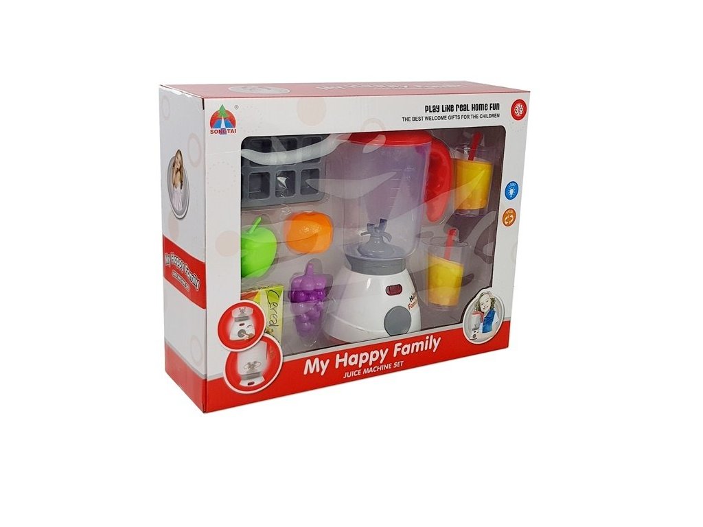 Dětská kuchyňská souprava, která se skládá z mixéru, ovoce, sklenic a formy na ledové kostky. Sada příslušenství vypadá velmi realisticky, což pouze vylepšuje její funkce.