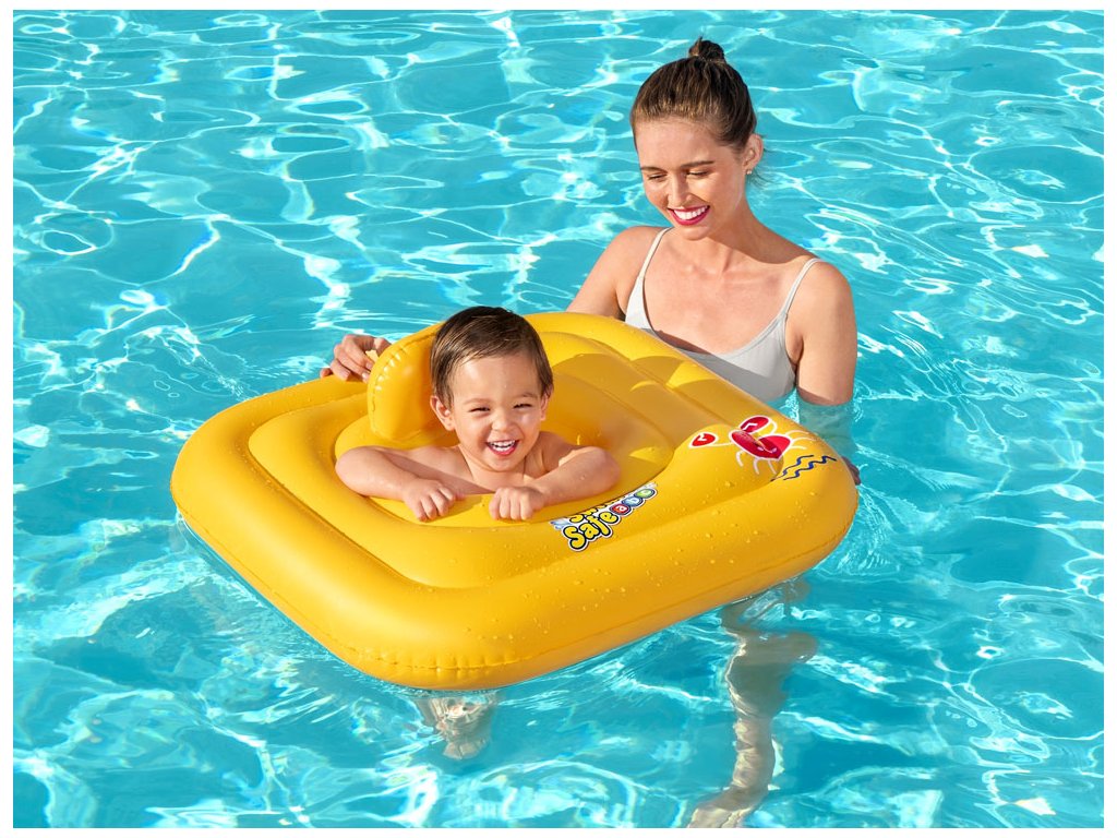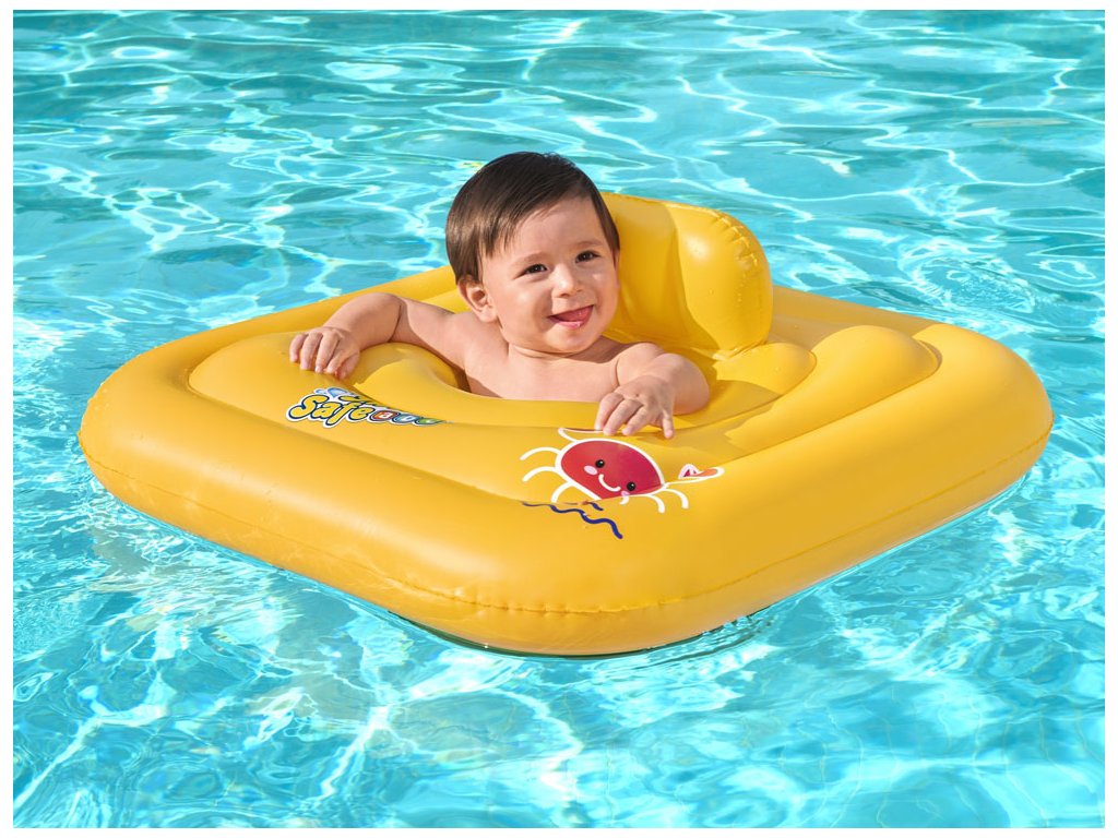 Dětský nafukovací fotel na plavání serií Swim Safe od Bestway. Fotbal o rozměrech 76 x 76 cm je určen pro děti ve věku od 1 roku do 2 let. Nafukovací fotelik je nezbytnou výbavou pro dítě, které teprve začíná svou cestu s plaváním. Díky speciálně navrženému sedadlu ve stylu pleny může malé dítě stabilně a bezpečně plavat ve vodě.