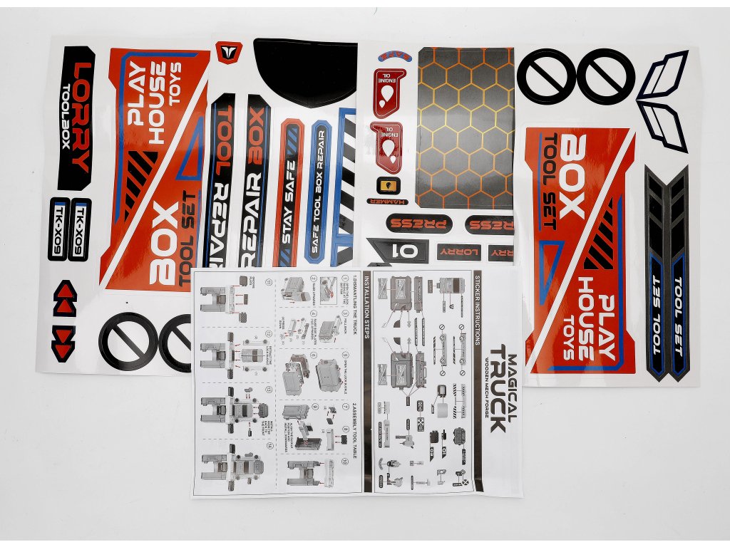 - Samolepky a návod k sestavení
