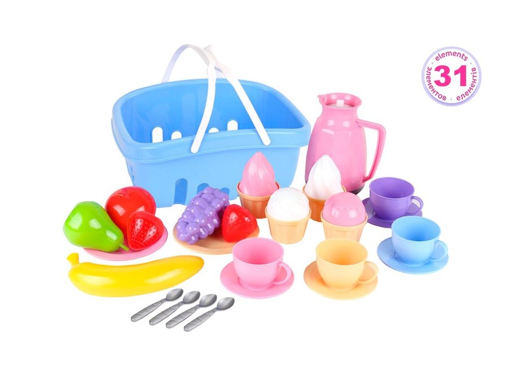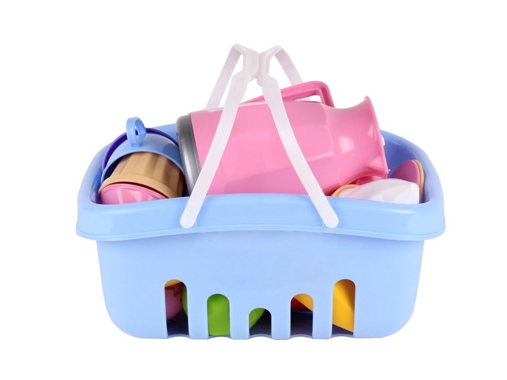 Dětský piknikový košík s potravinami modrý