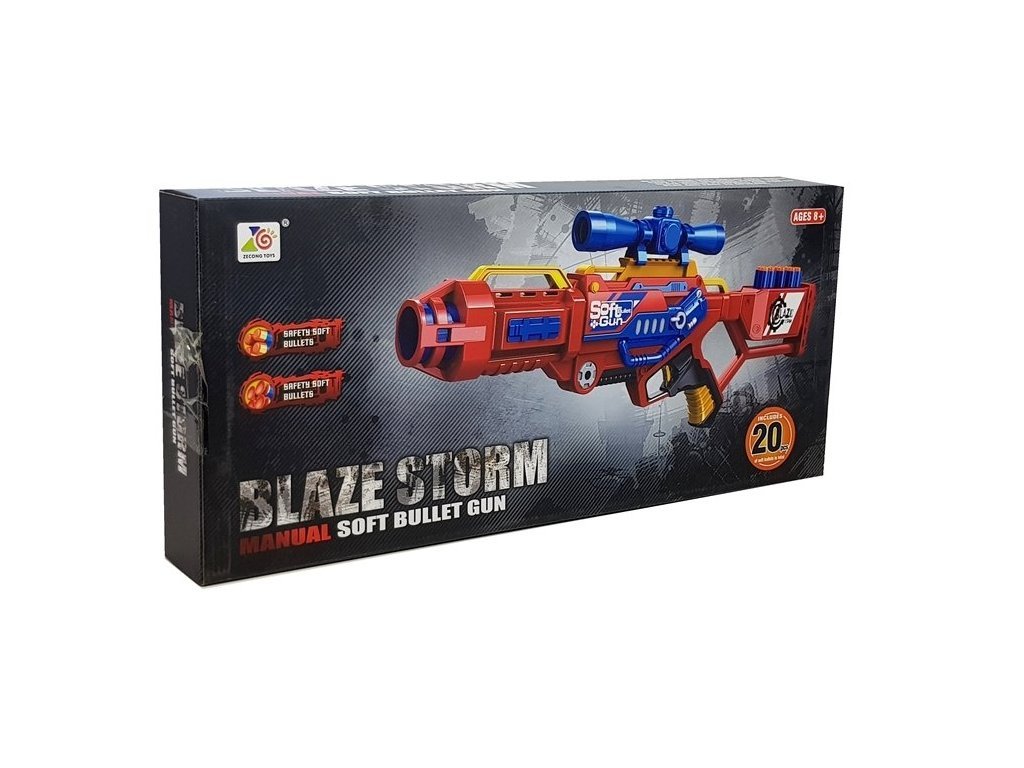 Extra rychlá a přesná pistole pro děti, která je nabíjena 10 pěnovými projektily, které nikomu neublíží. Jsou měkké a tupé, nehrozí tedy žádné zranění. Pistole se nabíjí zepředu a střílí až 3 projektily za sekundu! Pistole střílí až do vzdálenosti 10 m. Pistole je příruční, lehká a odolná. S touto pistolí se nudit nebudete, uspořádejte pořádnou střílečku u Vás doma, jistě se zapojí i tatínkové a vrátí se do dětských let spolu se svými syny. V nabídce máme více druhů pistolí značky Blaze Storm. Věková kategorie 6+.
