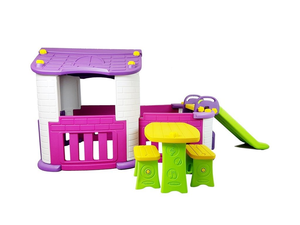Dětský zahradní domeček se skluzavkou 3v1 růžovo-fialový