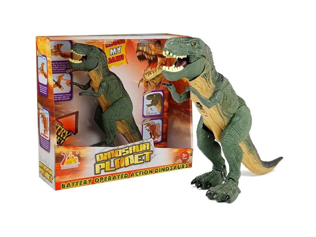 Dinosaurus Tyranosaurus Rex je skvělou imitací dinosaurů žijících před milióny lety. Po stlačení tlačítka smí dinosaurus chodit vpřed i vzad, doprovázejí ho svítící i zvukové efekty. Celek je zabalen v krabici, hodí se skvěle jako dárek.