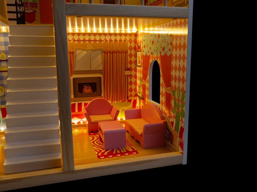 - Bohaté interiéry: Tři patra plná barevných místností – ložnice, kuchyň, koupelna, obývací pokoj, jídelna a balkon. Děti si mohou samy zařídit interiéry, rozvíjet kreativitu a estetické cítění.